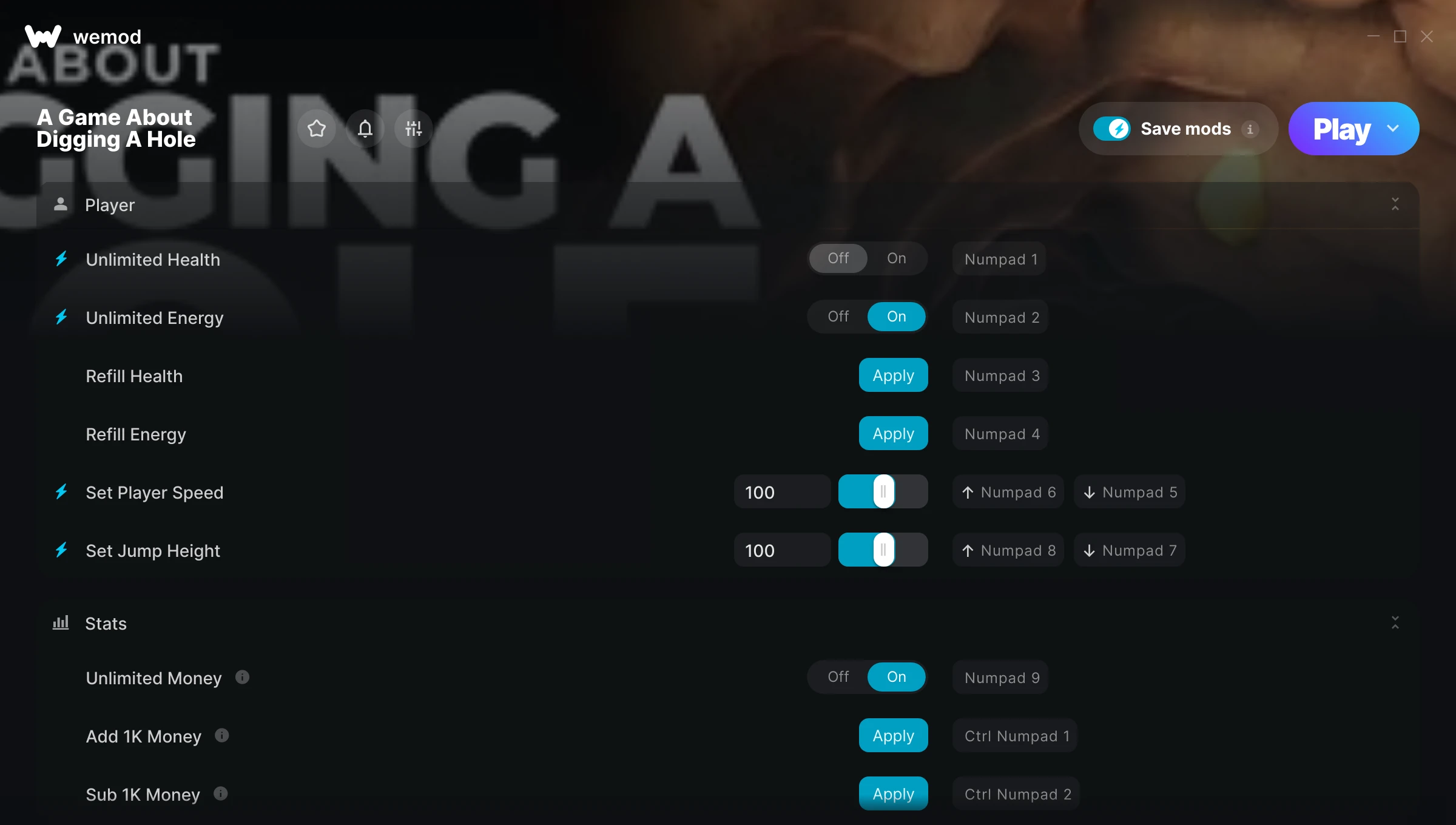 works well and without any noticeable issues that ive seen. Money works just fine, as do both health and energy mods. havent played with speed or jump yet, since I dont really get why you would need them.