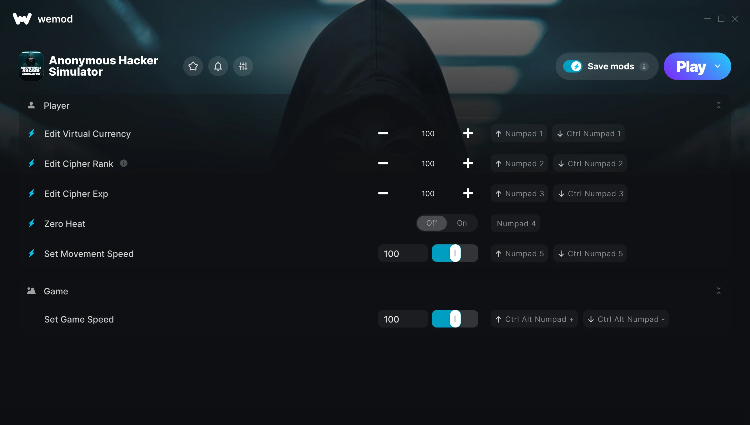 How do I use the cheats in Anonymous Hacker Simulator?WeMod will safely display all of the games on your PC. Open a game from the list and simply press play. After the game loads and once you’re in-game, you can start enabling different cheats!Will this work with my game version?WeMod uses advanced technology to detect the game version you’re running and will let you know if it’s supported. If it’s not, you will still have the option of giving it a try or requesting an update!