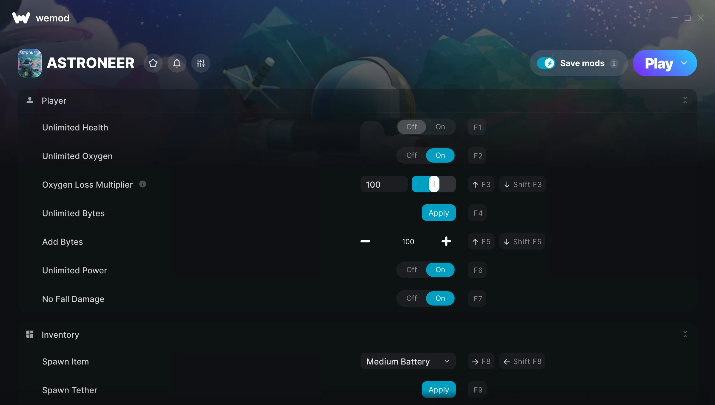 With your Mod I could experience the game carefree. To be honest the "unlitmited Oxygen" was enough help for me though.