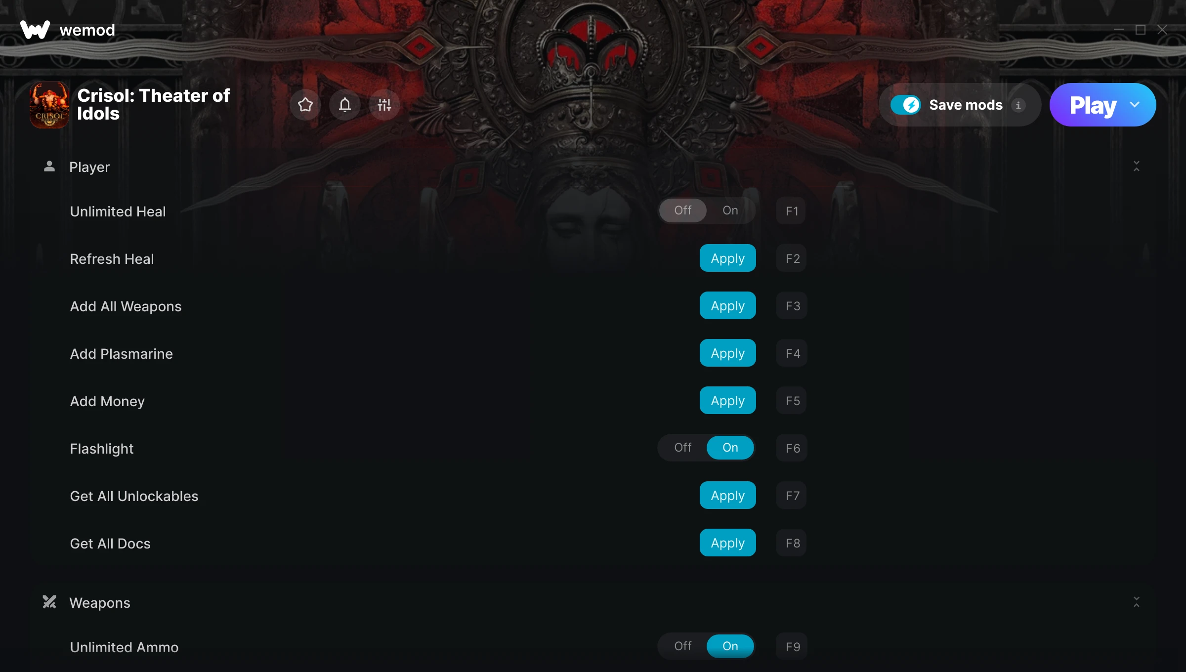 WeMod will safely display all of the games on your PC. Open a game from the list and simply press play. After the game loads and once you’re in-game, you can start enabling different cheats!