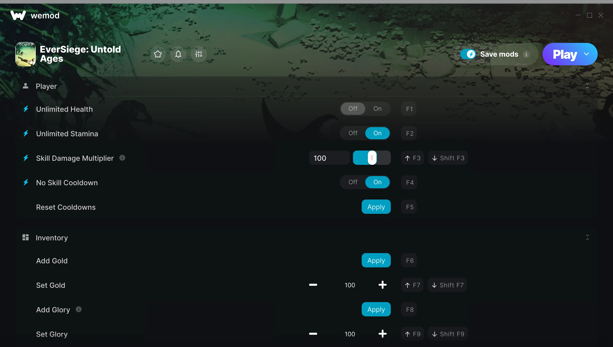 How do I use the cheats in EverSiege: Untold Ages?WeMod will safely display all of the games on your PC. Open a game from the list and simply press play. After the game loads and once you’re in-game, you can start enabling different cheats!Will this work with my game version?WeMod uses advanced technology to detect the game version you’re running and will let you know if it’s supported. If it’s not, you will still have the option of giving it a try or requesting an update!