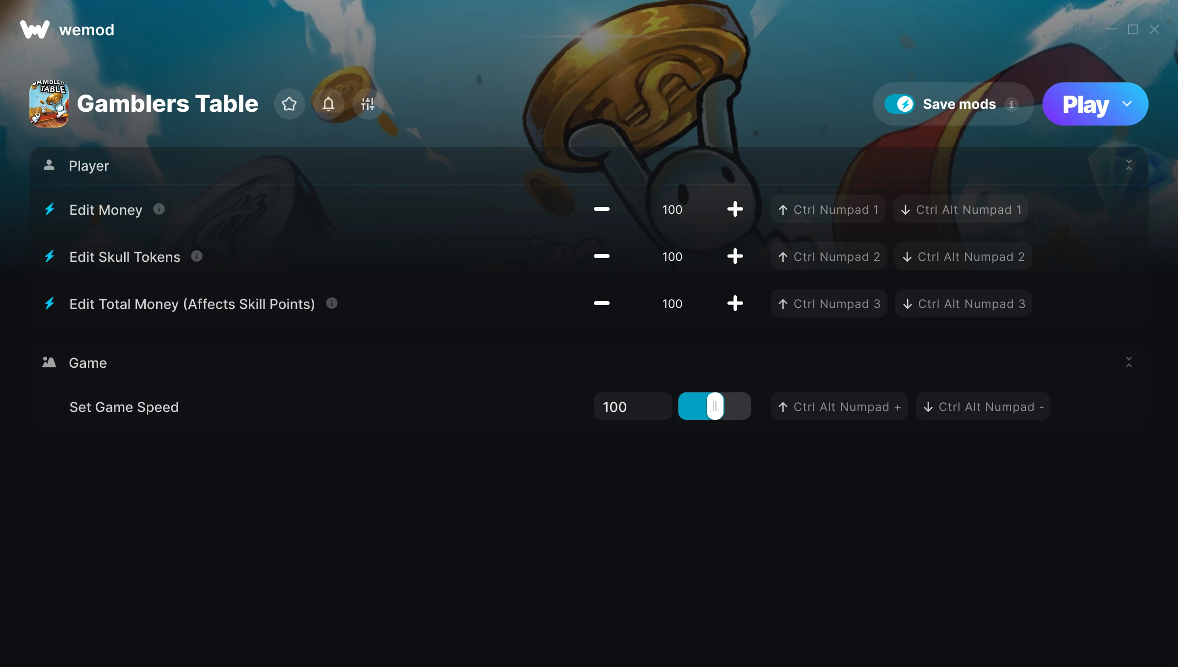 85MB Windows ...or visit us on your PC to download the app Get Edit Money, Edit Skull Tokens & 2 other mods for Gamblers Table with WeMod