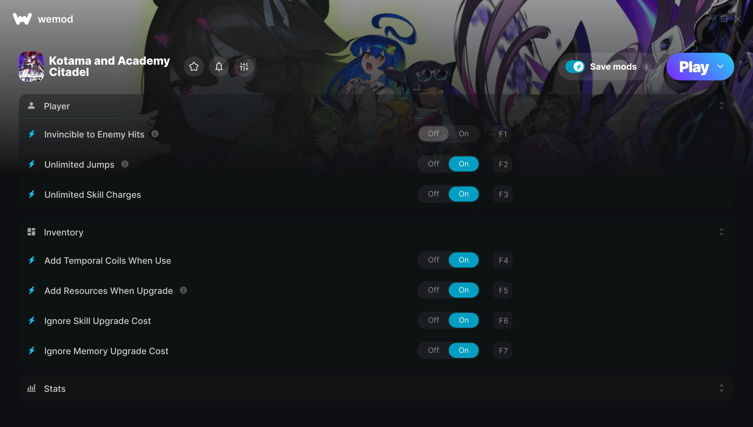 How do I use the cheats in Kotama and Academy Citadel?WeMod will safely display all of the games on your PC. Open a game from the list and simply press play. After the game loads and once you’re in-game, you can start enabling different cheats!Will this work with my game version?WeMod uses advanced technology to detect the game version you’re running and will let you know if it’s supported. If it’s not, you will still have the option of giving it a try or requesting an update!