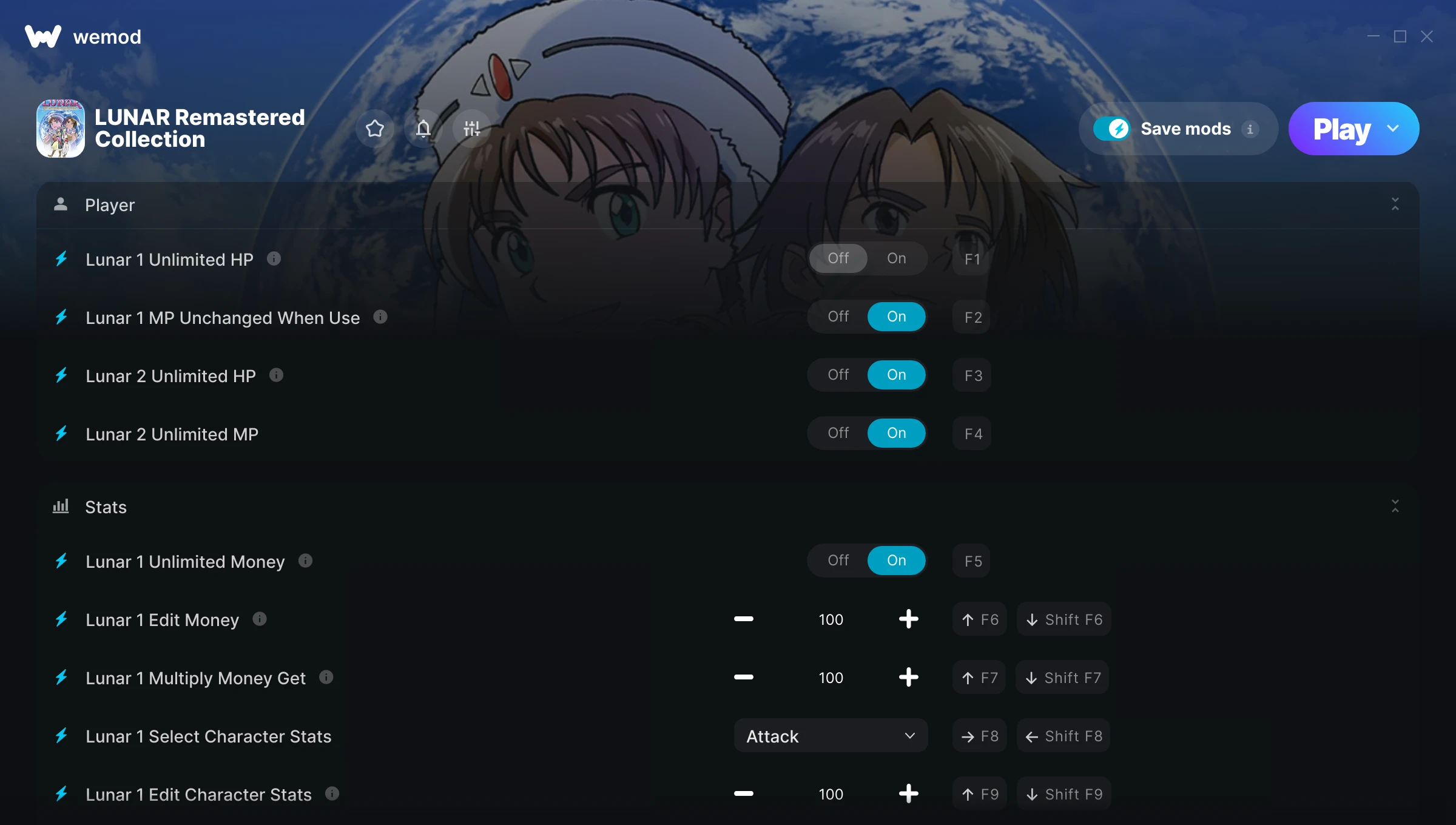 How do I use the cheats in LUNAR Remastered Collection?WeMod will safely display all of the games on your PC. Open a game from the list and simply press play. After the game loads and once you’re in-game, you can start enabling different cheats!Will this work with my game version?WeMod uses advanced technology to detect the game version you’re running and will let you know if it’s supported. If it’s not, you will still have the option of giving it a try or requesting an update!