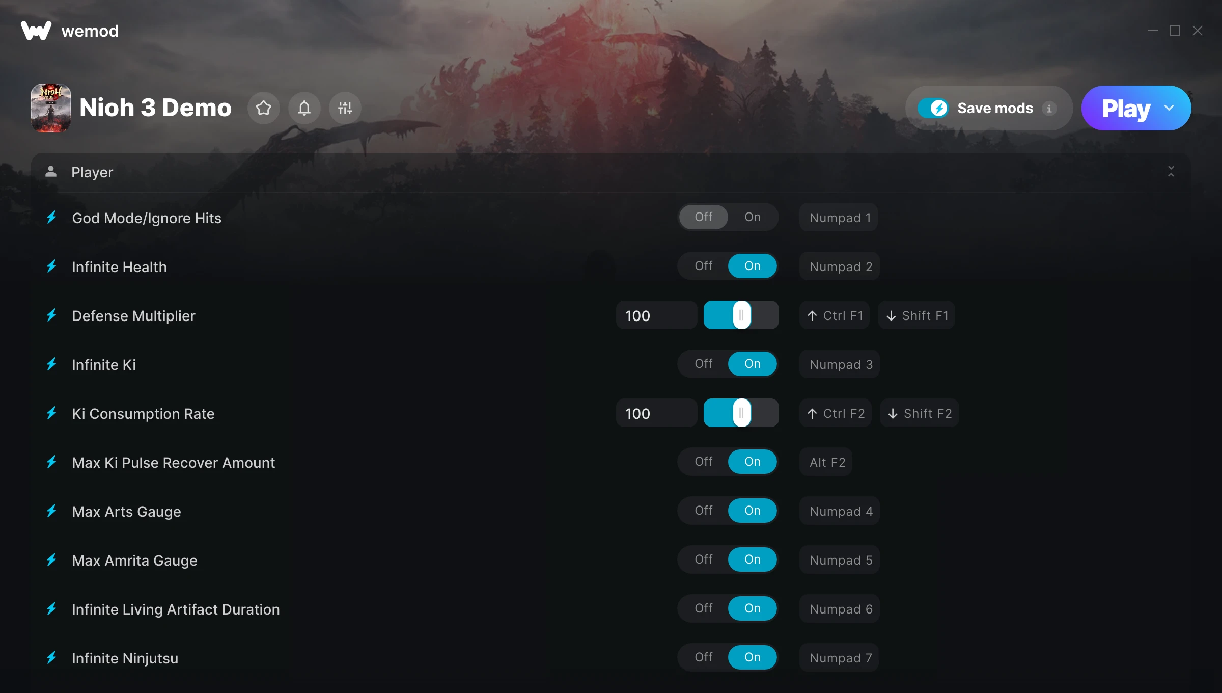 How do I use the cheats in Nioh 3 Demo?WeMod will safely display all of the games on your PC. Open a game from the list and simply press play. After the game loads and once you’re in-game, you can start enabling different cheats!Will this work with my game version?WeMod uses advanced technology to detect the game version you’re running and will let you know if it’s supported. If it’s not, you will still have the option of giving it a try or requesting an update!