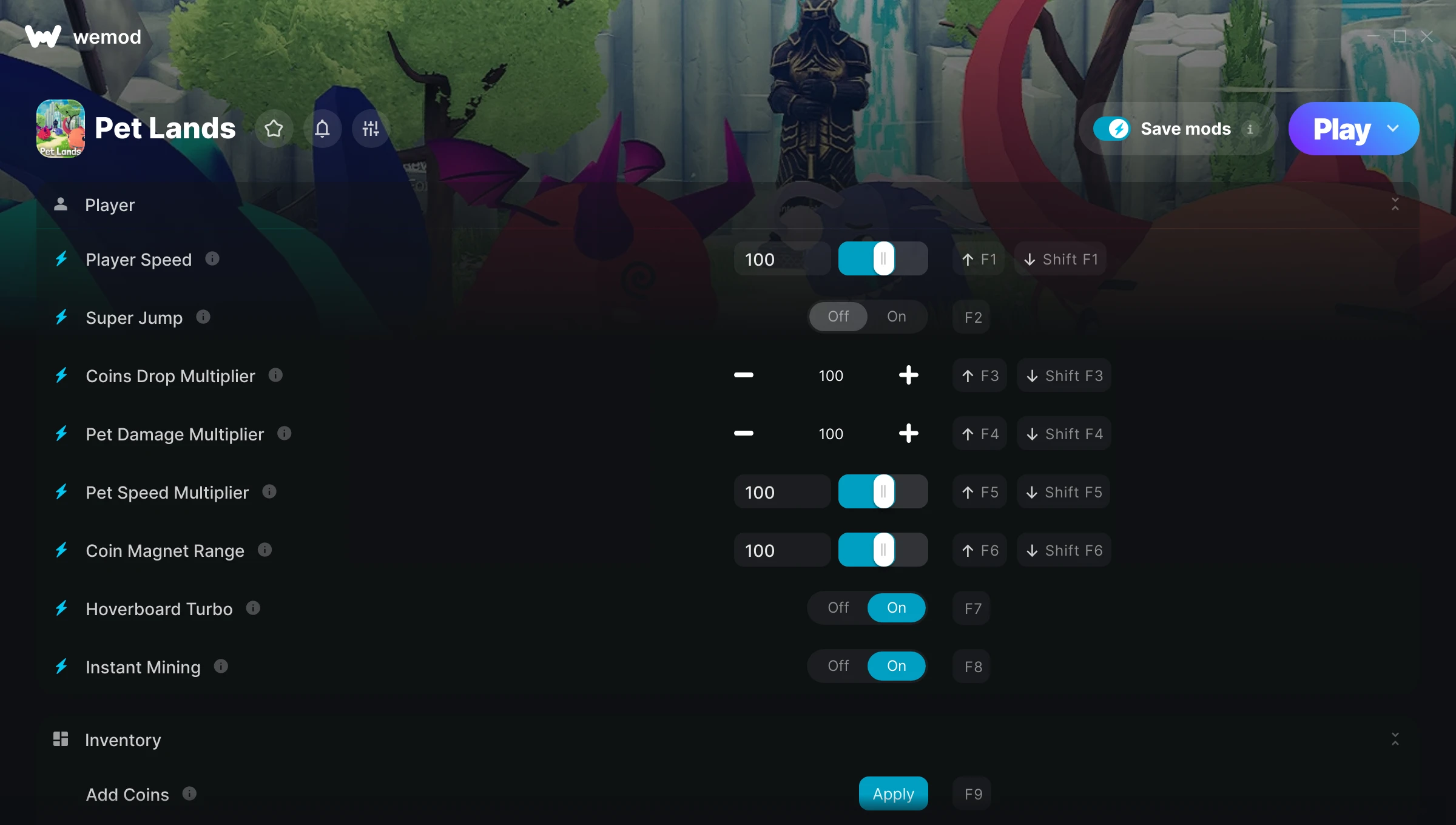 How do I use the cheats in Pet Lands?WeMod will safely display all of the games on your PC. Open a game from the list and simply press play. After the game loads and once you’re in-game, you can start enabling different cheats!Will this work with my game version?WeMod uses advanced technology to detect the game version you’re running and will let you know if it’s supported. If it’s not, you will still have the option of giving it a try or requesting an update!