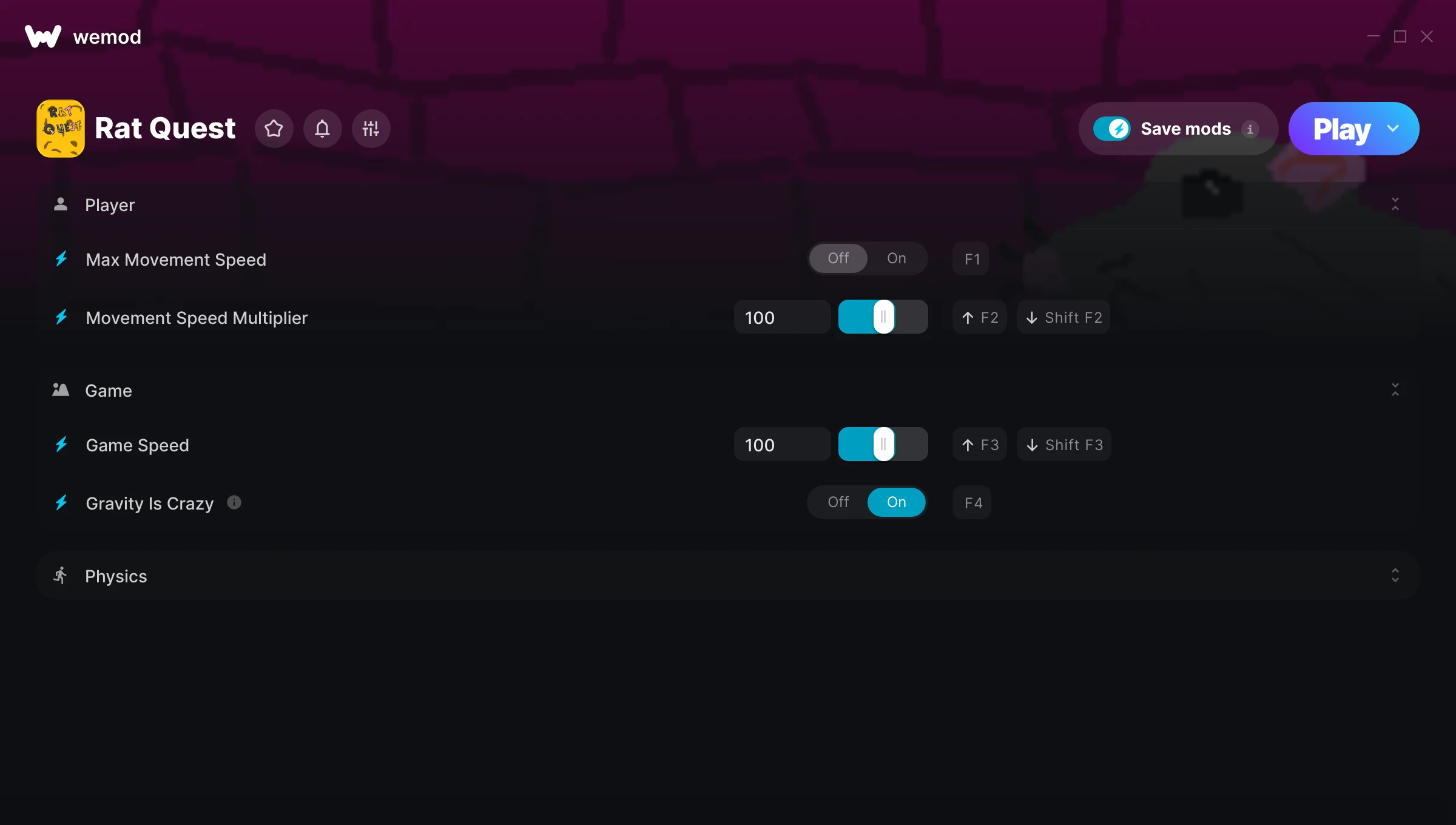 How do I use the cheats in Rat Quest?WeMod will safely display all of the games on your PC. Open a game from the list and simply press play. After the game loads and once you’re in-game, you can start enabling different cheats!Will this work with my game version?WeMod uses advanced technology to detect the game version you’re running and will let you know if it’s supported. If it’s not, you will still have the option of giving it a try or requesting an update!