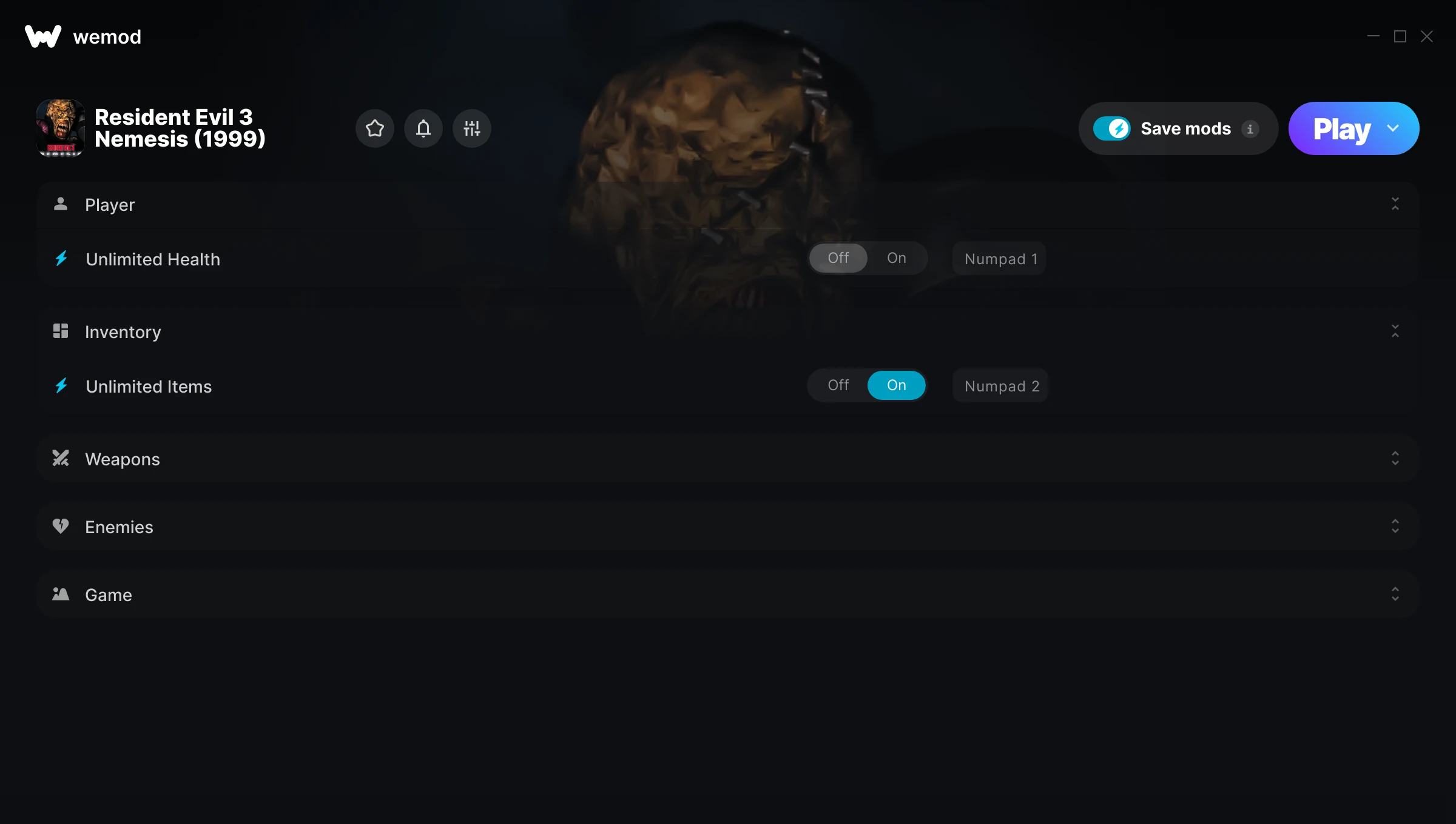 for Resident Evil 3 Nemesis (1999) with WeMod
