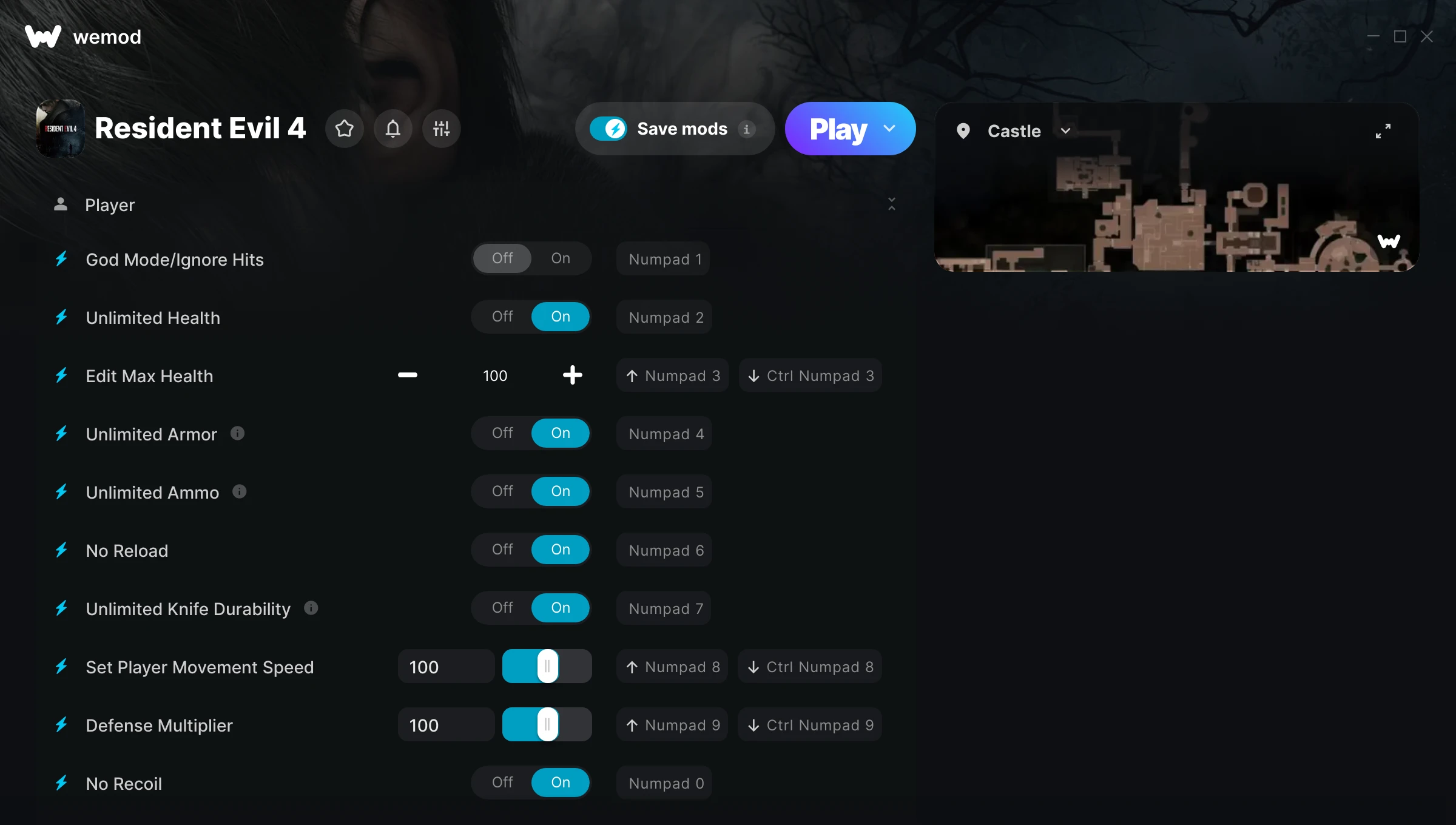 Playing the original RE:4 years ago with no mods/cheats was fun and a challenge that would push me to almost rage quit. With WeMod, I can alter just a couple things with the mods and make the game a little less challenging and will be able to take my time to sit there and trophy hunt as well!