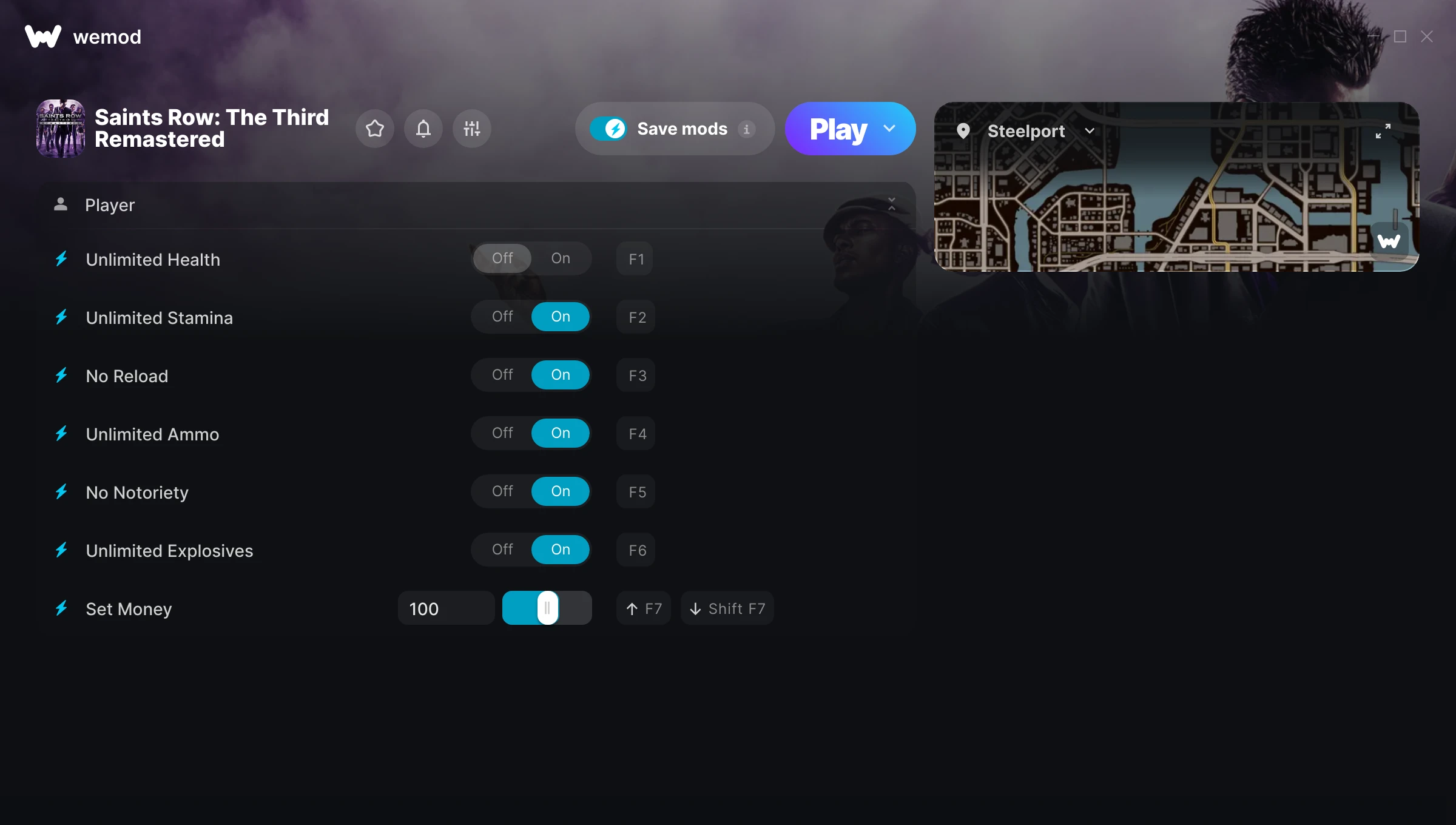 The mods work really well and I love how you can assign your ow shortcuts in game. I hope that you can add mod saves were WeMod remembers mods you've activated so you don't have to keep activating them.