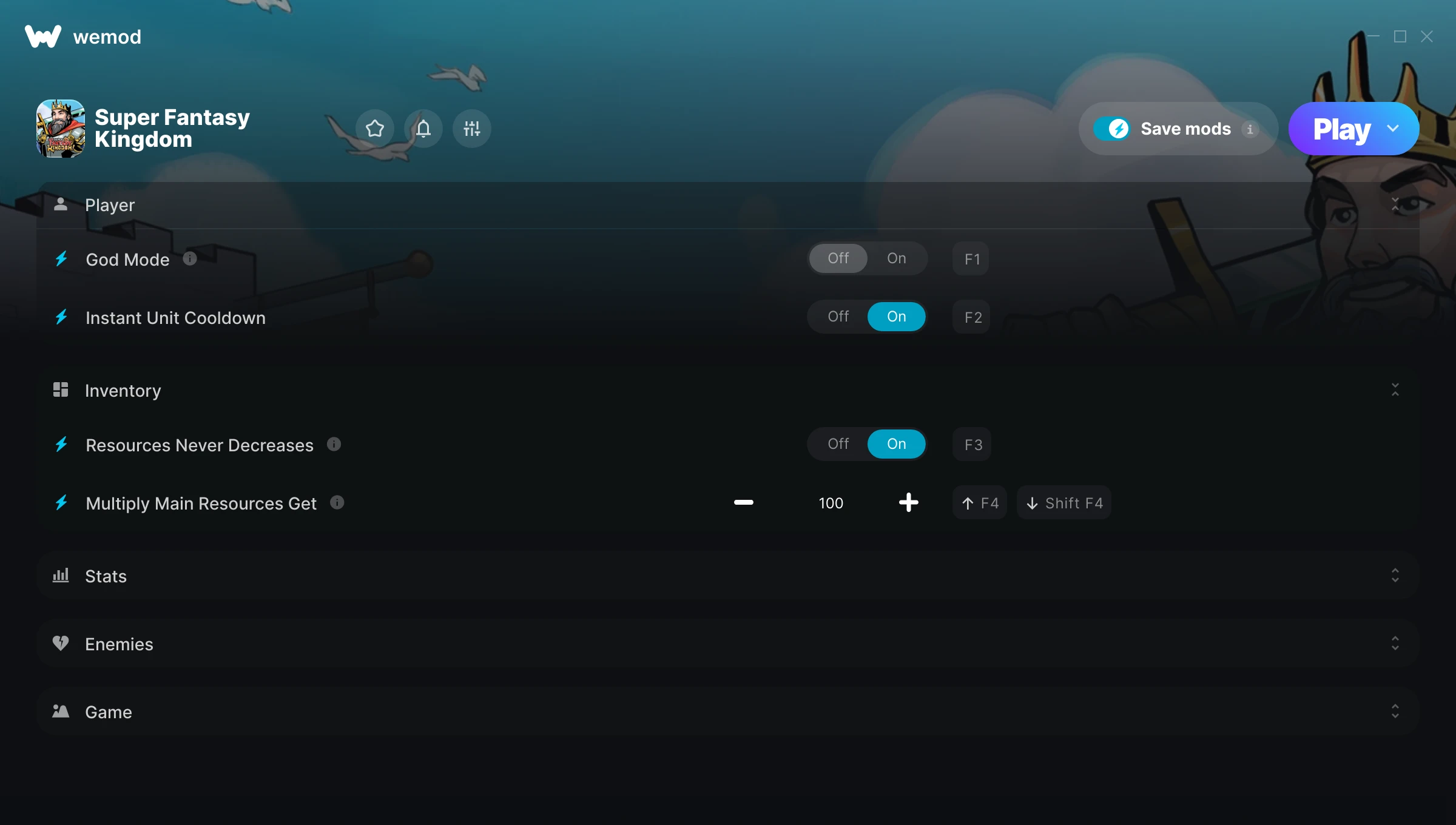 How do I use the cheats in Super Fantasy Kingdom?WeMod will safely display all of the games on your PC. Open a game from the list and simply press play. After the game loads and once you’re in-game, you can start enabling different cheats!Will this work with my game version?WeMod uses advanced technology to detect the game version you’re running and will let you know if it’s supported. If it’s not, you will still have the option of giving it a try or requesting an update!