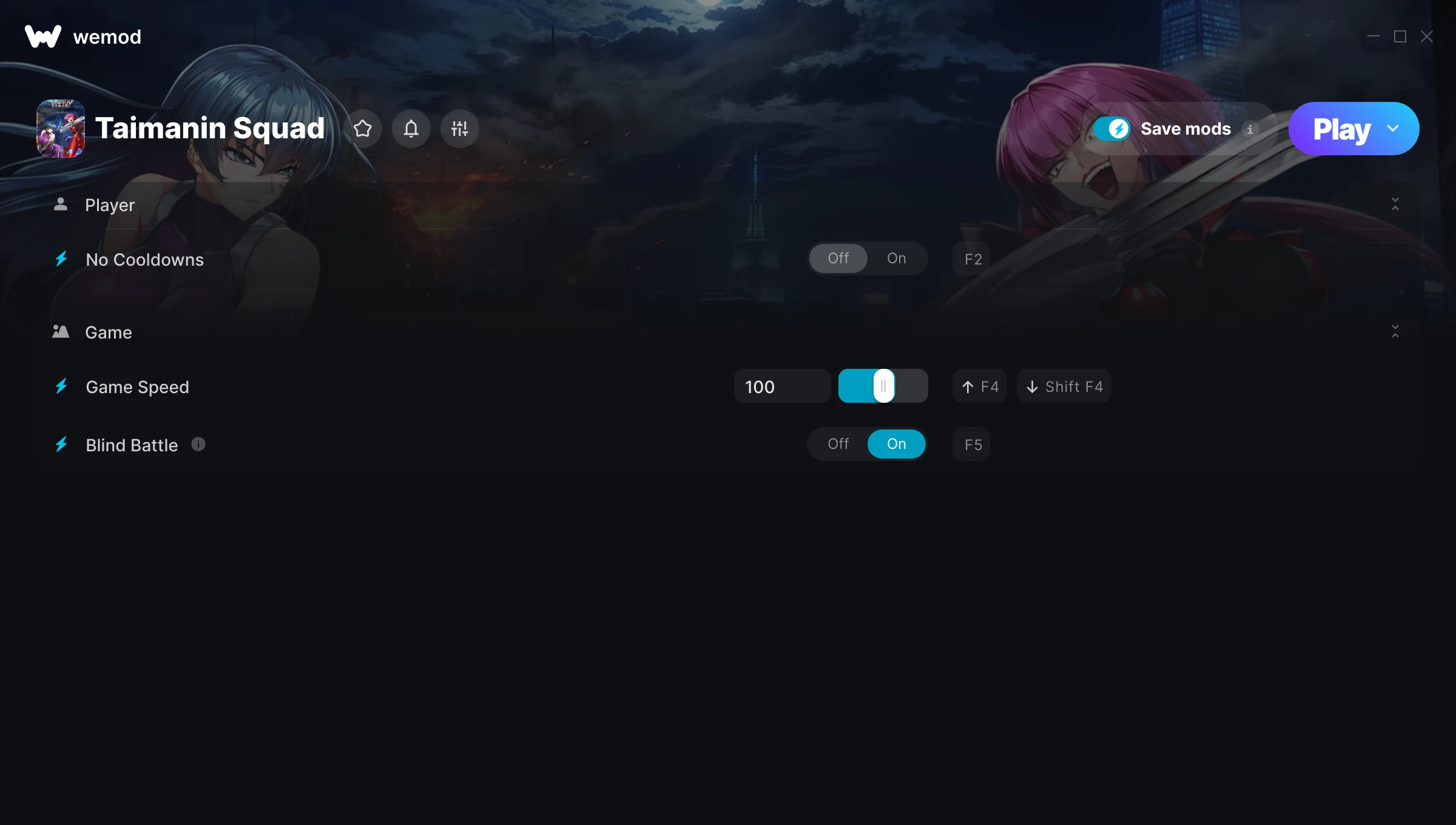 How do I use the cheats in Taimanin Squad?WeMod will safely display all of the games on your PC. Open a game from the list and simply press play. After the game loads and once you’re in-game, you can start enabling different cheats!Will this work with my game version?WeMod uses advanced technology to detect the game version you’re running and will let you know if it’s supported. If it’s not, you will still have the option of giving it a try or requesting an update!