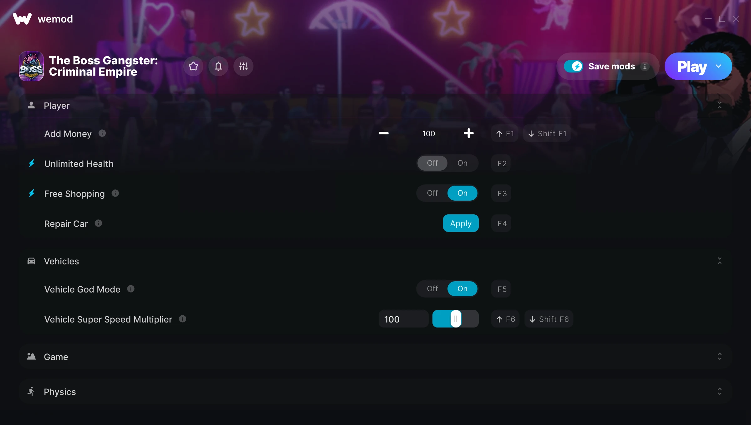 How do I use the cheats in The Boss Gangster: Criminal Empire?WeMod will safely display all of the games on your PC. Open a game from the list and simply press play. After the game loads and once you’re in-game, you can start enabling different cheats!Will this work with my game version?WeMod uses advanced technology to detect the game version you’re running and will let you know if it’s supported. If it’s not, you will still have the option of giving it a try or requesting an update!