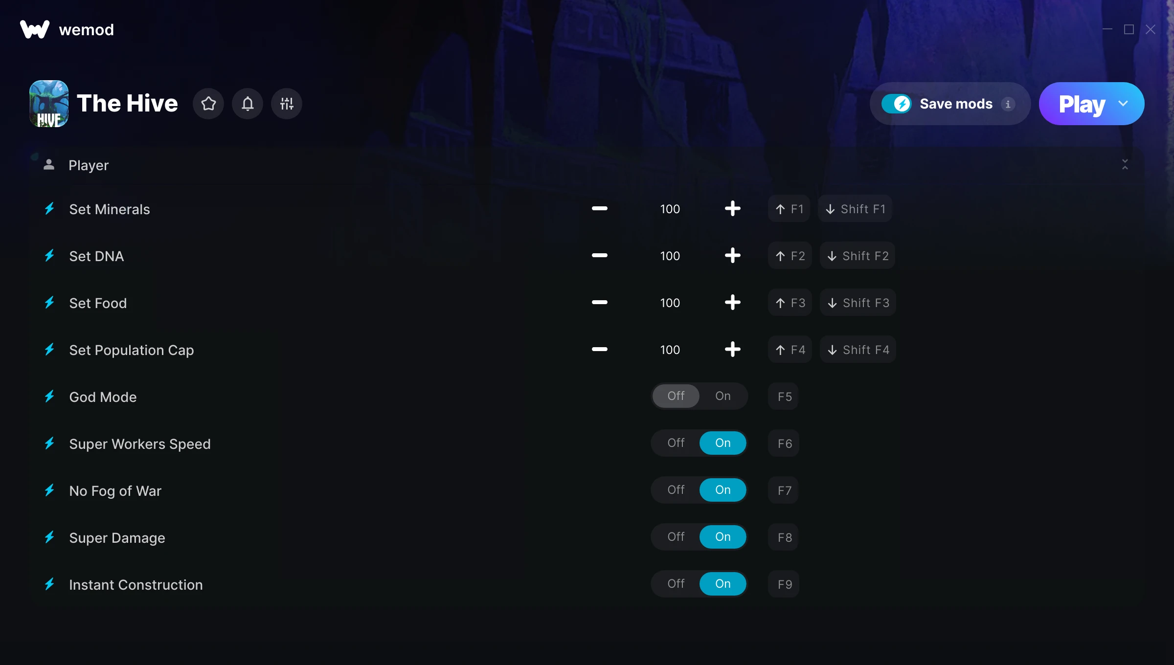 How do I use the cheats in The Hive?WeMod will safely display all of the games on your PC. Open a game from the list and simply press play. After the game loads and once you’re in-game, you can start enabling different cheats!Will this work with my game version?WeMod uses advanced technology to detect the game version you’re running and will let you know if it’s supported. If it’s not, you will still have the option of giving it a try or requesting an update!