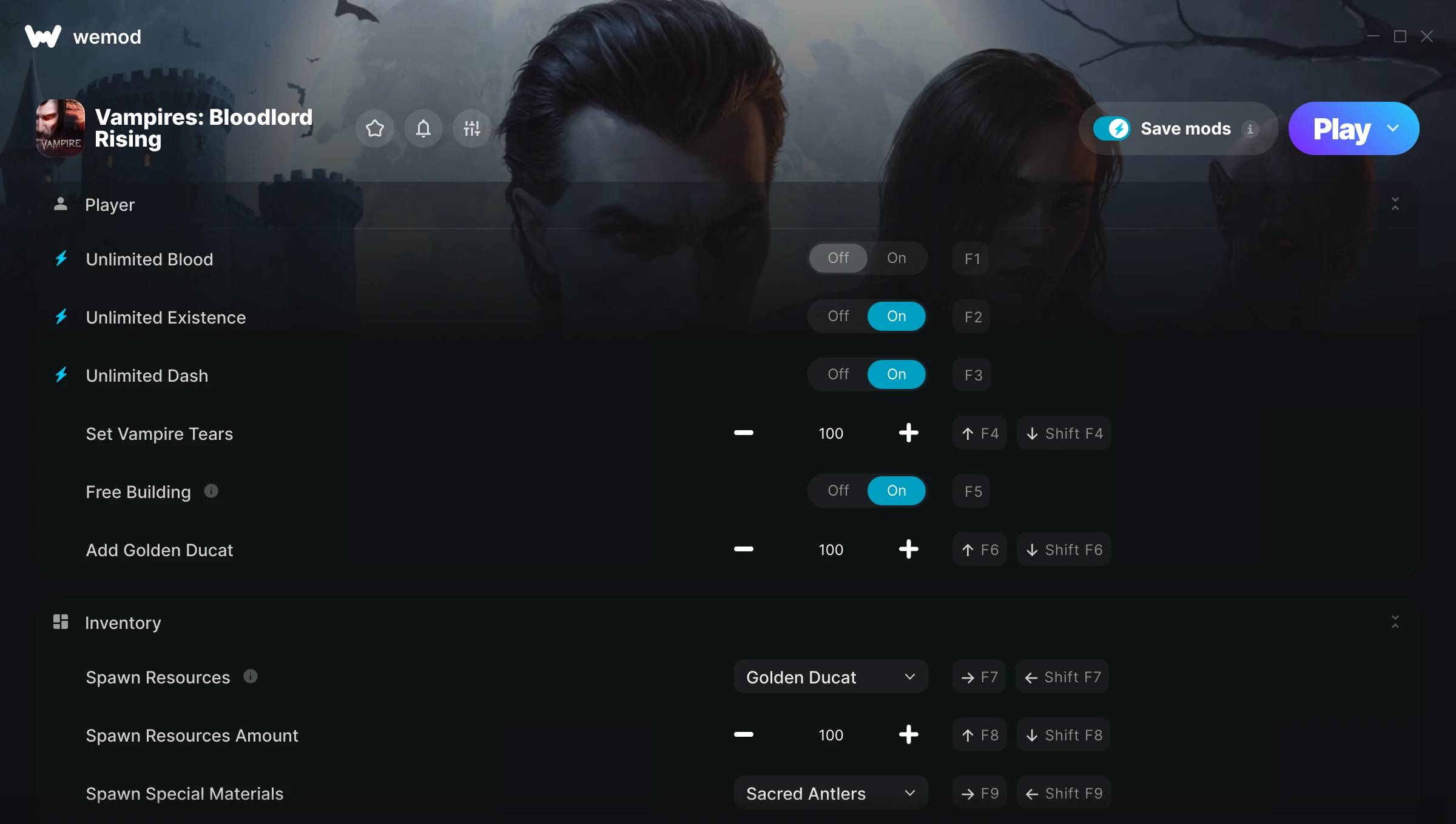 How do I use the cheats in Vampires: Bloodlord Rising?WeMod will safely display all of the games on your PC. Open a game from the list and simply press play. After the game loads and once you’re in-game, you can start enabling different cheats!Will this work with my game version?WeMod uses advanced technology to detect the game version you’re running and will let you know if it’s supported. If it’s not, you will still have the option of giving it a try or requesting an update!