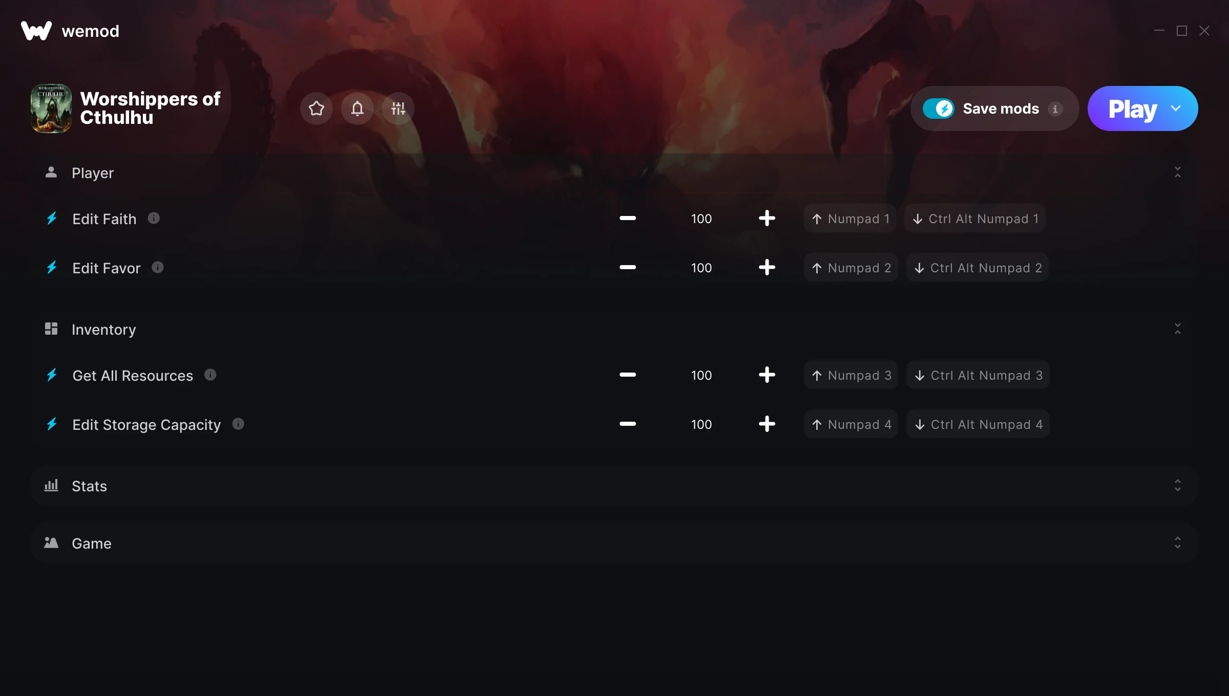 How do I use the cheats in Worshippers of Cthulhu?WeMod will safely display all of the games on your PC. Open a game from the list and simply press play. After the game loads and once you’re in-game, you can start enabling different cheats!Will this work with my game version?WeMod uses advanced technology to detect the game version you’re running and will let you know if it’s supported. If it’s not, you will still have the option of giving it a try or requesting an update!
