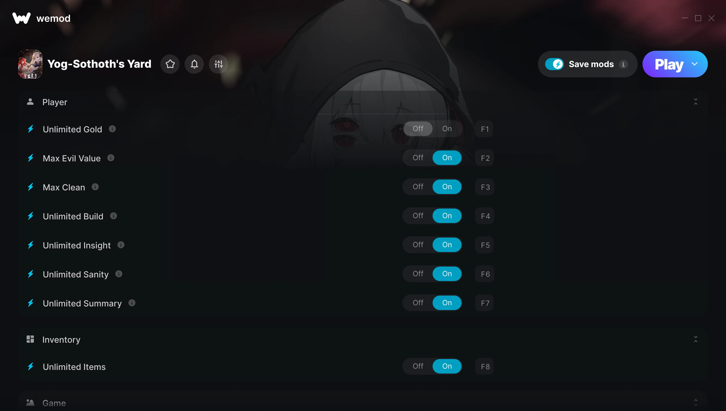 How do I use the cheats in Yog-Sothoth's Yard?WeMod will safely display all of the games on your PC. Open a game from the list and simply press play. After the game loads and once you’re in-game, you can start enabling different cheats!Will this work with my game version?WeMod uses advanced technology to detect the game version you’re running and will let you know if it’s supported. If it’s not, you will still have the option of giving it a try or requesting an update!