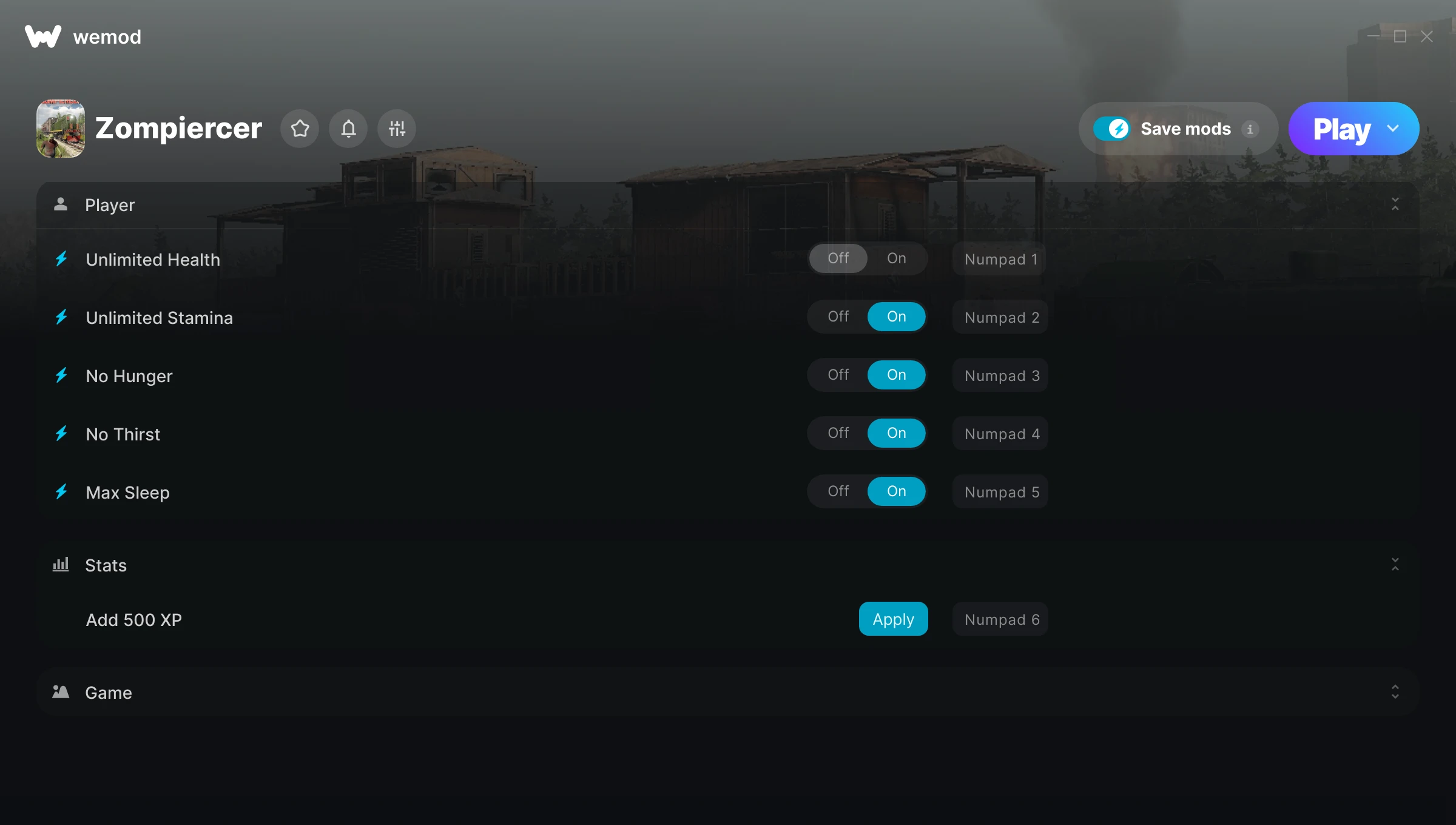 Thank you so much for letting me play the game without dying in 5 minutes of playing the game bc thats what haapened without wemod. lol :-)