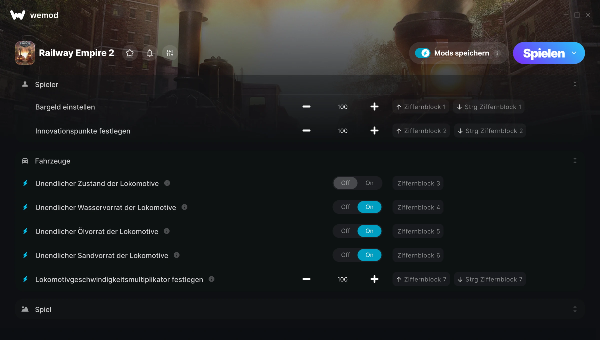 85MB Windows ...oder besuche uns auf deinem PC, um die App herunterzuladen Hole dir Bargeld einstellen, Innovationspunkte festlegen & 9 andere Mods for Railway Empire 2 with WeMod