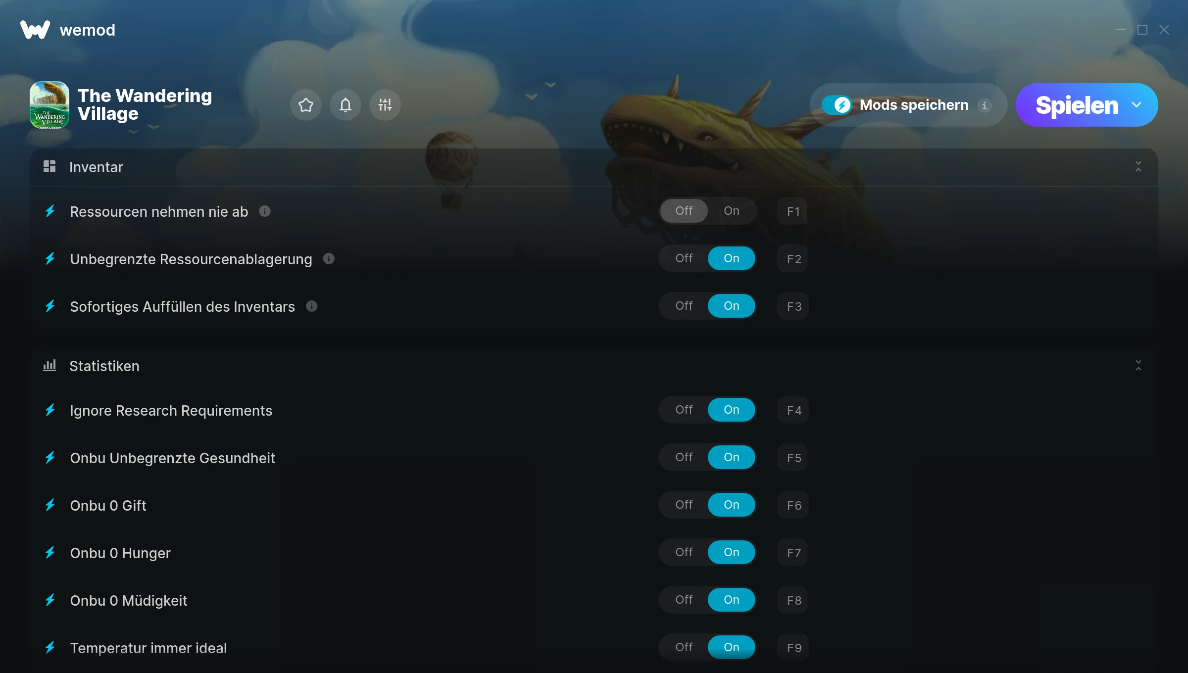 85MB Windows ...oder besuche uns auf deinem PC, um die App herunterzuladen Hole dir Ressourcen nehmen nie ab, Unbegrenzte Ressourcenablagerung & 22 andere Mods for The Wandering Village with WeMod