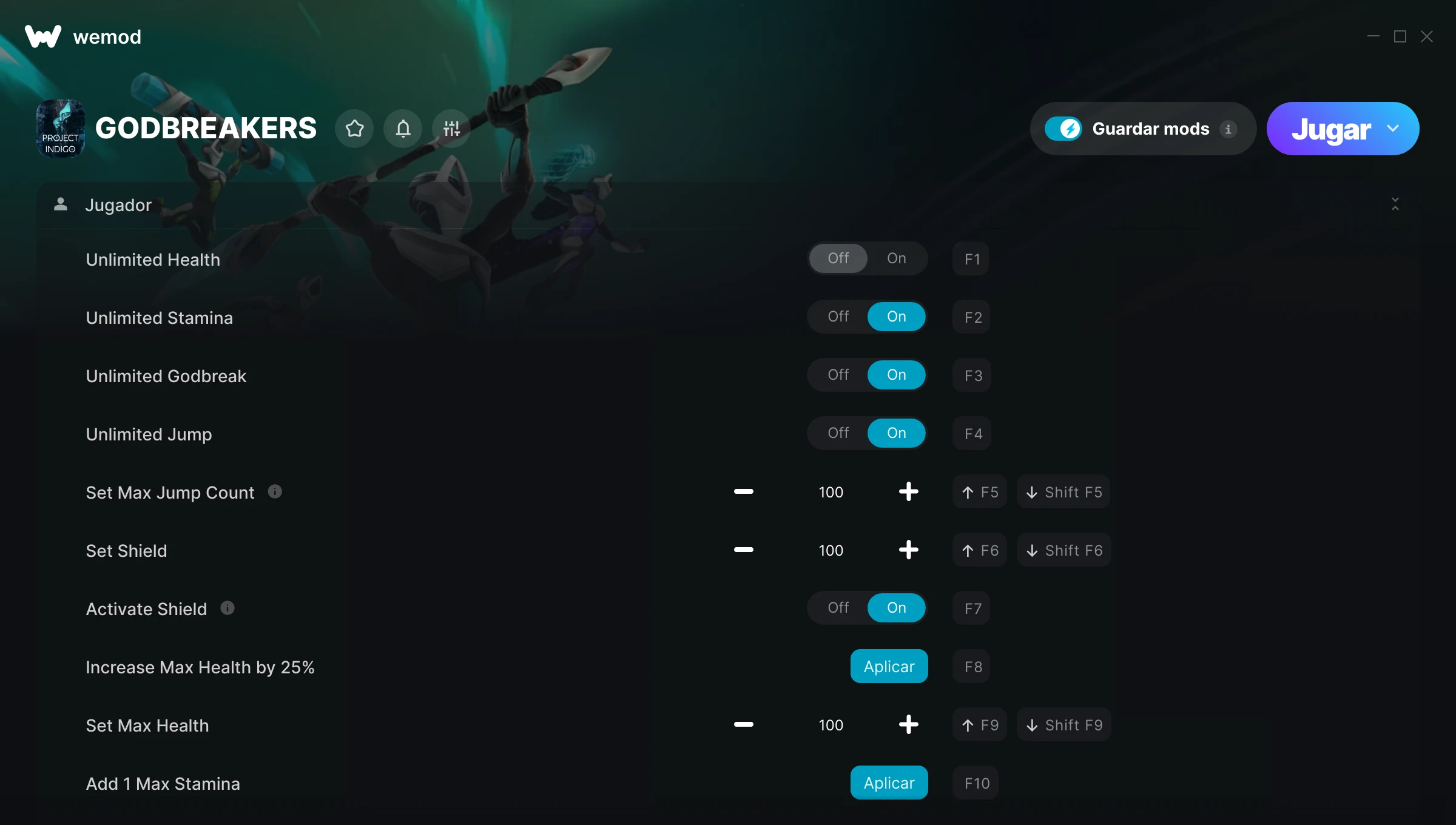 ¿Cómo puedo usar las trampas para GODBREAKERS?WeMod mostrará todos los juegos en tu PC de forma segura. Abre un juego de la lista y simplemente pulsa jugar. Cuando el juego se haya cargado y estés in-game, podrás empezar a activar las diferentes trampas.¿Funcionará esto con mi versión del juego?WeMod utiliza tecnología avanzada para detectar la versión del juego que tienes y te informará si es compatible. Si no es así, todavía tendrás la opción de probarlo o solicitar una actualización.