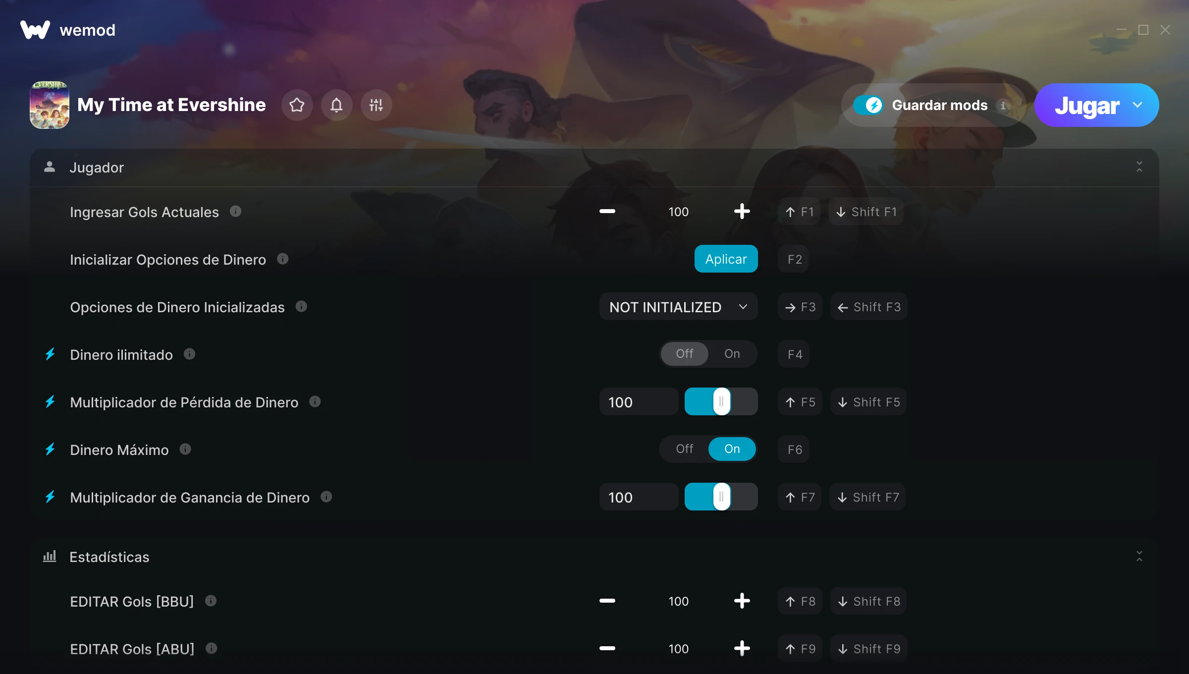 ¿Cómo puedo usar las trampas para My Time at Evershine?WeMod mostrará todos los juegos en tu PC de forma segura. Abre un juego de la lista y simplemente pulsa jugar. Cuando el juego se haya cargado y estés in-game, podrás empezar a activar las diferentes trampas.¿Funcionará esto con mi versión del juego?WeMod utiliza tecnología avanzada para detectar la versión del juego que tienes y te informará si es compatible. Si no es así, todavía tendrás la opción de probarlo o solicitar una actualización.