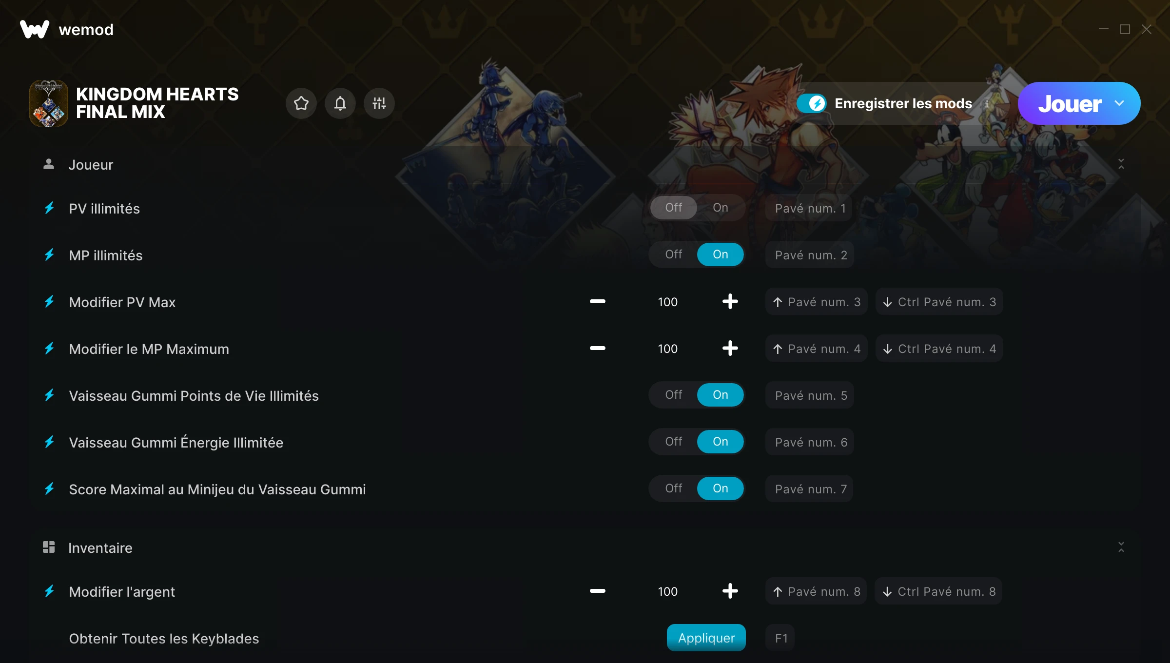 WeMod ran flawlessly with Kingdom Hearts, and I really like the buttons set to the numberpad by default, it's my preference.
