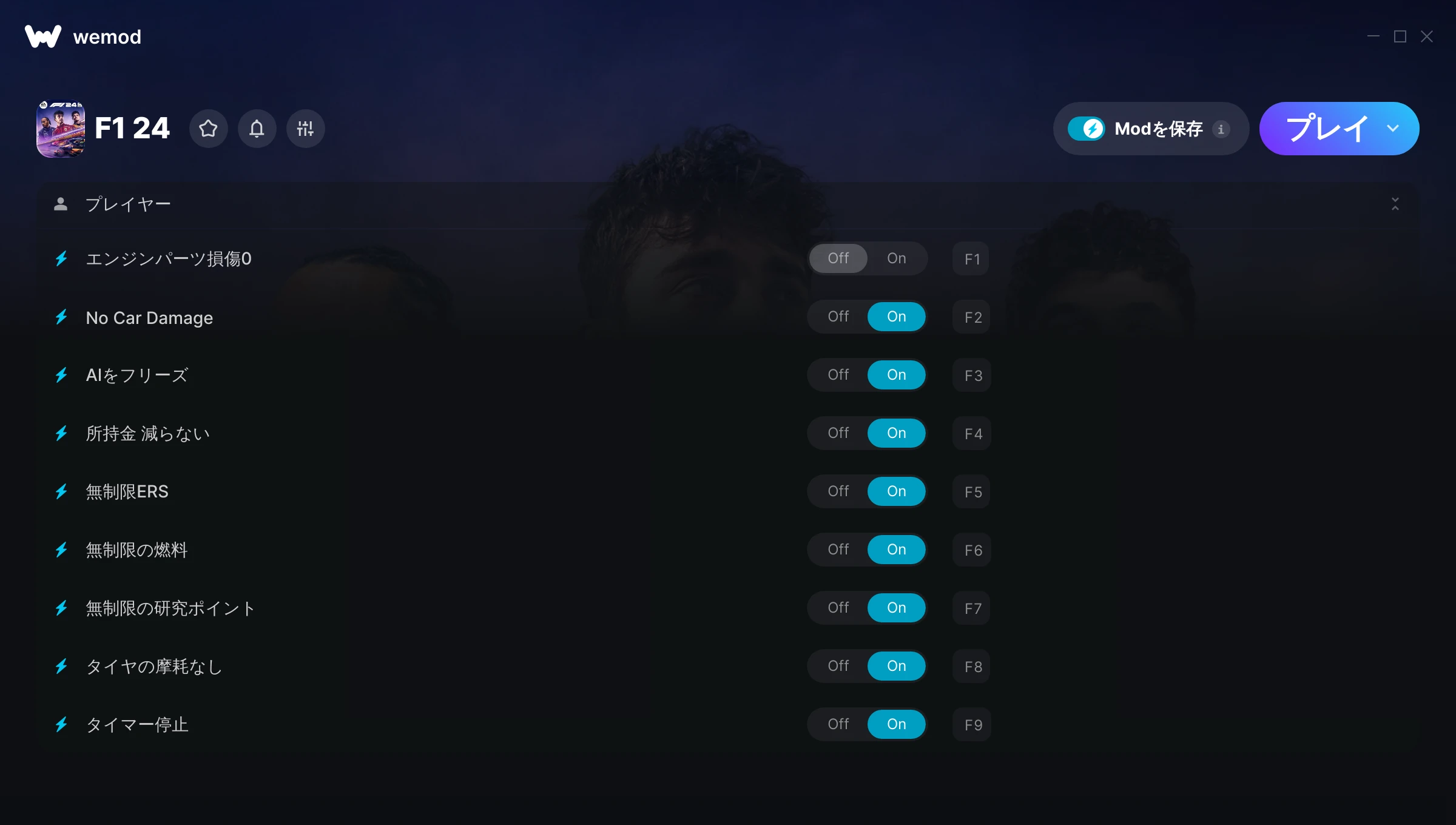 F1 24でチートを使うにはどうすればよいですか?WeModはすべてのゲームをPC上に安全に表現します。リストからゲームを開き、プレイを開始するだけです。ゲームが読み込まれ、ユーザーがゲーム内に入ると、さまざまなチートを有効化できるようになります!これは私のゲームのバージョンで動作しますか?WeModは高度な技術を使用して、実行中のゲームのバージョンを検知し、対応しているかどうかをユーザーに通知します。通知がなくても試してみることができますが、その場合はアップデートをリクエストしてみてください!