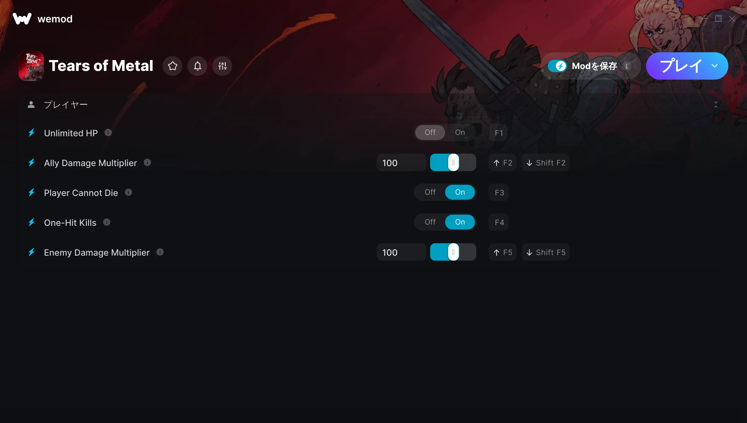Tears of Metalでチートを使うにはどうすればよいですか?WeModはすべてのゲームをPC上に安全に表現します。リストからゲームを開き、プレイを開始するだけです。ゲームが読み込まれ、ユーザーがゲーム内に入ると、さまざまなチートを有効化できるようになります!これは私のゲームのバージョンで動作しますか?WeModは高度な技術を使用して、実行中のゲームのバージョンを検知し、対応しているかどうかをユーザーに通知します。通知がなくても試してみることができますが、その場合はアップデートをリクエストしてみてください!