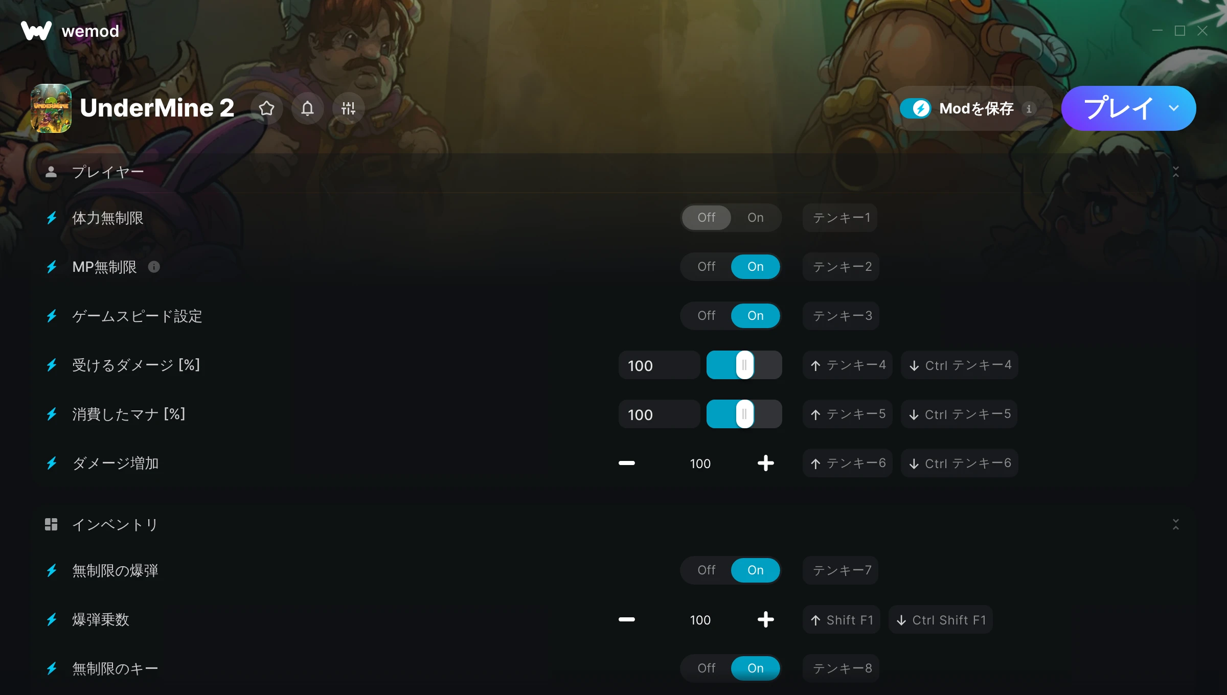 85MB Windows ...またはPCでWeModにアクセスしてアプリをダウンロード 体力無制限を入手, MP無制限 & その他18件のMod for UnderMine 2 with WeMod