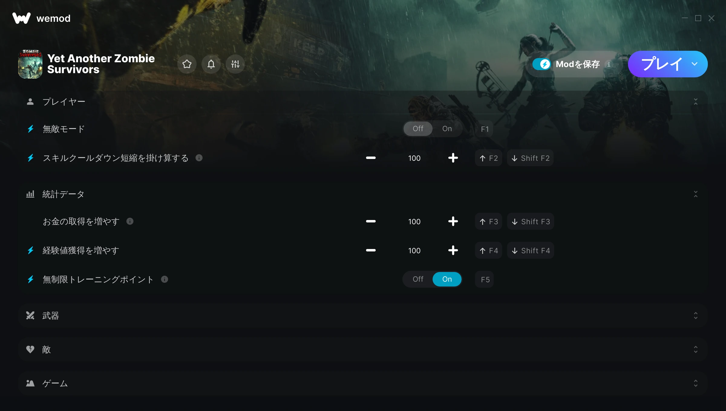 85MB Windows ...またはPCでWeModにアクセスしてアプリをダウンロード 無敵モードを入手, スキルクールダウン短縮を掛け算する & その他6件のMod for Yet Another Zombie Survivors with WeMod