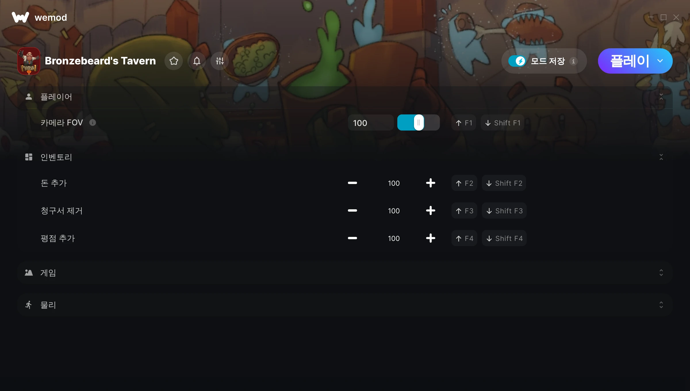 Bronzebeard's Tavern에서 치트를 사용하려면 어떻게 해야 하나요?WeMod는 PC의 모든 게임을 표시합니다. 목록에서 게임을 선택하고 플레이를 누르세요. 게임을 시작하면 다양한 치트를 활성화할 수 있습니다!모드가 제 게임 버전과 호환될까요?WeMod는 고급 기술로 실행 중인 게임 버전을 탐지하고 모드 지원 여부를 표시합니다. 모드가 지원되지 않는다면 모드를 테스트해보거나 업데이트를 요청할 수 있습니다!