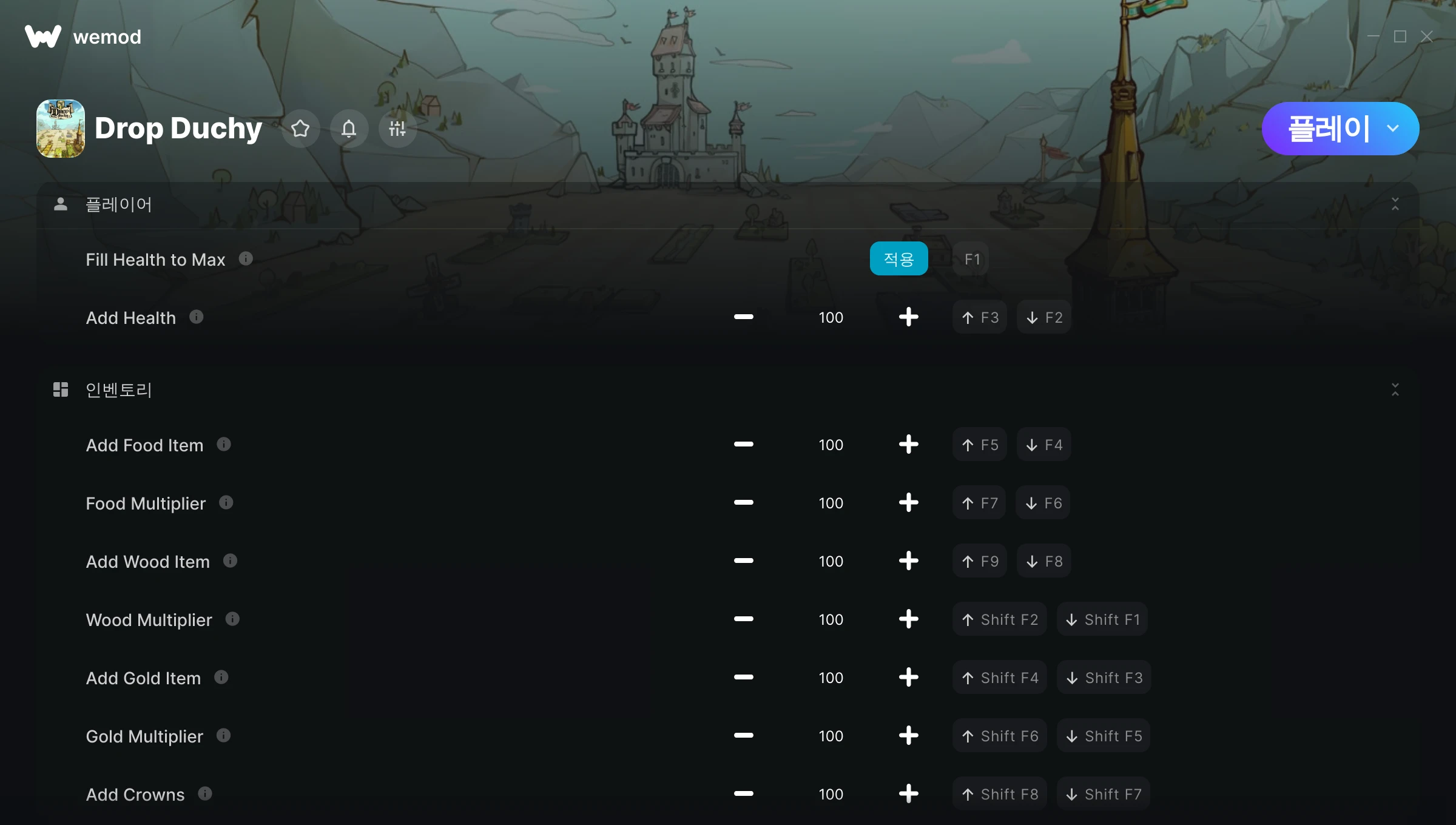 Drop Duchy에서 치트를 사용하려면 어떻게 해야 하나요?WeMod는 PC의 모든 게임을 표시합니다. 목록에서 게임을 선택하고 플레이를 누르세요. 게임을 시작하면 다양한 치트를 활성화할 수 있습니다!모드가 제 게임 버전과 호환될까요?WeMod는 고급 기술로 실행 중인 게임 버전을 탐지하고 모드 지원 여부를 표시합니다. 모드가 지원되지 않는다면 모드를 테스트해보거나 업데이트를 요청할 수 있습니다!