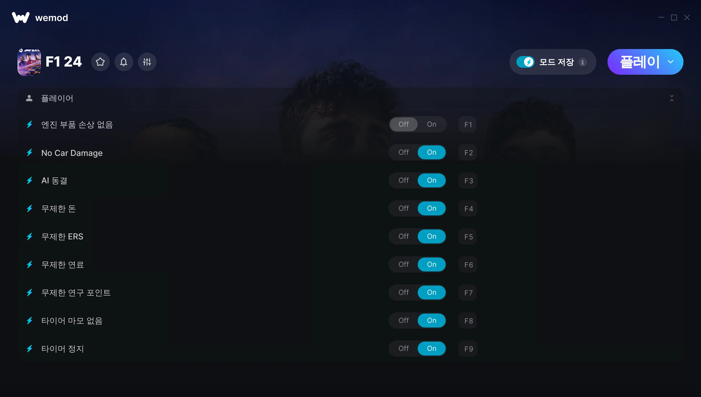 F1 24에서 치트를 사용하려면 어떻게 해야 하나요?WeMod는 PC의 모든 게임을 표시합니다. 목록에서 게임을 선택하고 플레이를 누르세요. 게임을 시작하면 다양한 치트를 활성화할 수 있습니다!모드가 제 게임 버전과 호환될까요?WeMod는 고급 기술로 실행 중인 게임 버전을 탐지하고 모드 지원 여부를 표시합니다. 모드가 지원되지 않는다면 모드를 테스트해보거나 업데이트를 요청할 수 있습니다!