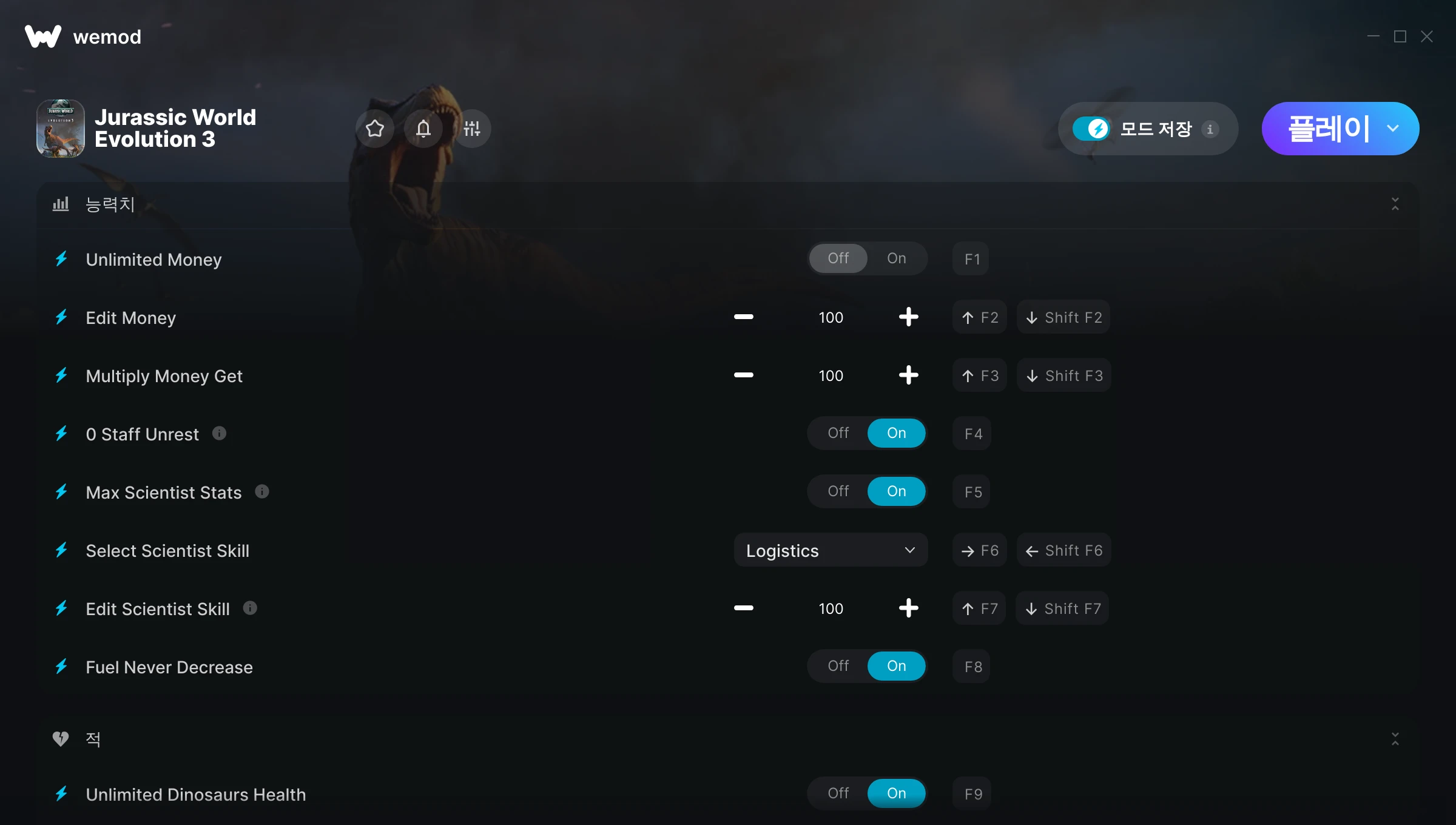 85MB Windows ...또는 PC에서 WeMod를 방문해 앱을 다운로드할 수도 있습니다 무한 돈 받기, 돈 편집 & 13개의 다른 모드 for Jurassic World Evolution 3 with WeMod
