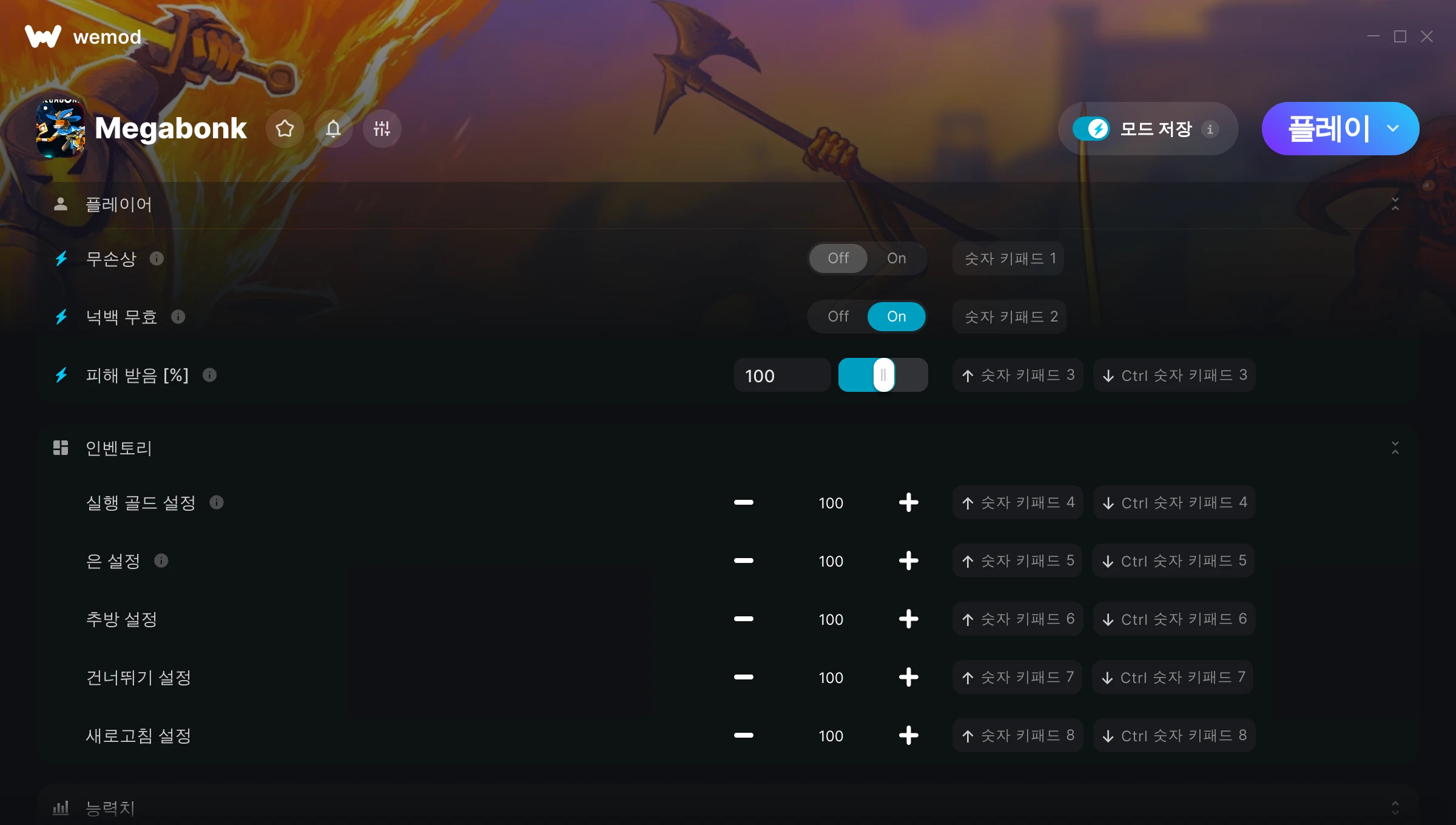 켜짐 꺼짐 무제한 체력 무제한 스태미너 모드 전환