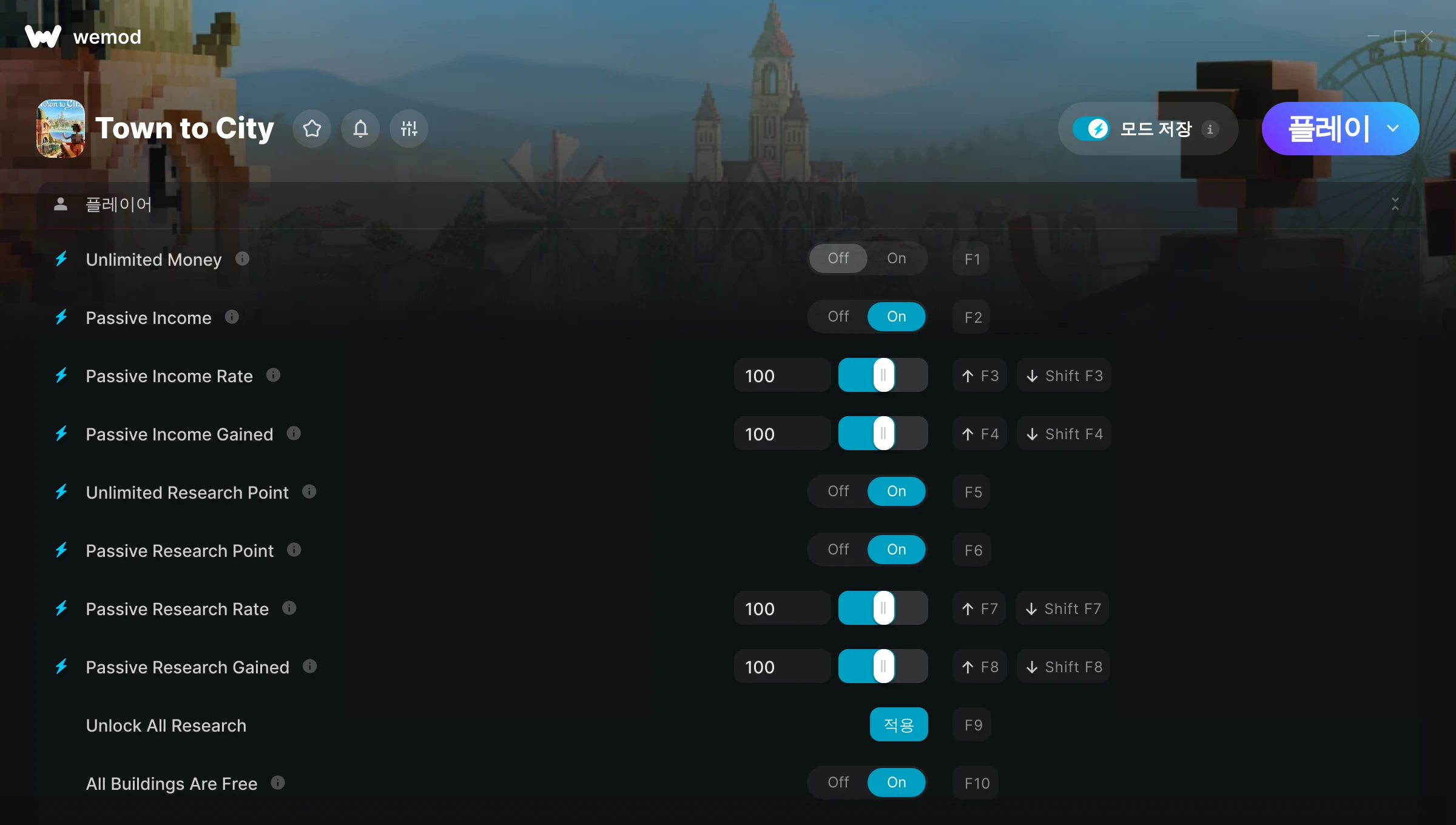 Town to City에서 치트를 사용하려면 어떻게 해야 하나요?WeMod는 PC의 모든 게임을 표시합니다. 목록에서 게임을 선택하고 플레이를 누르세요. 게임을 시작하면 다양한 치트를 활성화할 수 있습니다!모드가 제 게임 버전과 호환될까요?WeMod는 고급 기술로 실행 중인 게임 버전을 탐지하고 모드 지원 여부를 표시합니다. 모드가 지원되지 않는다면 모드를 테스트해보거나 업데이트를 요청할 수 있습니다!