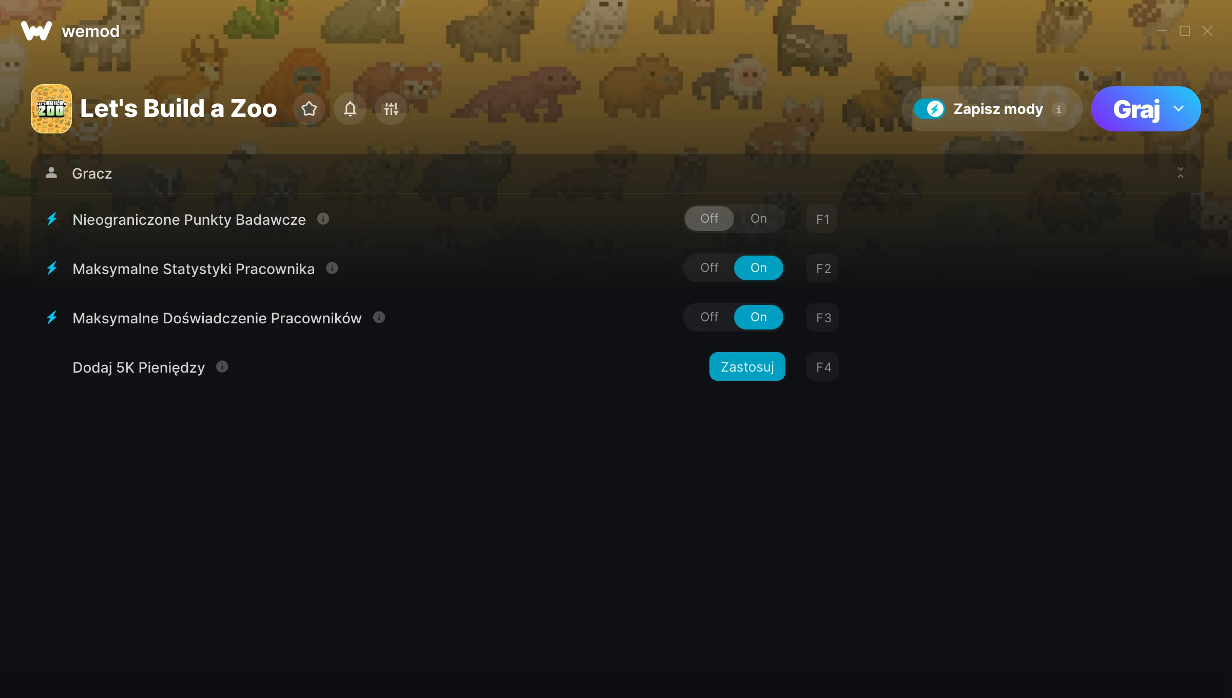 Dowiedz się więcejWeMod jest zawsze bezpieczny i darmowy dzięki naszej wielomilionowej społeczności graczy na całym świecie. Jesteśmy wspierani przez subskrybentów WeMod Pro. Sprawdź nasze recenzje na Trustpilot.