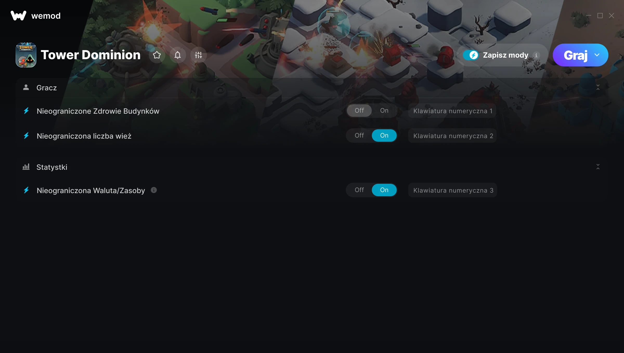 Dowiedz się więcejWeMod jest zawsze bezpieczny i darmowy dzięki naszej wielomilionowej społeczności graczy na całym świecie. Jesteśmy wspierani przez subskrybentów WeMod Pro. Sprawdź nasze recenzje na Trustpilot.