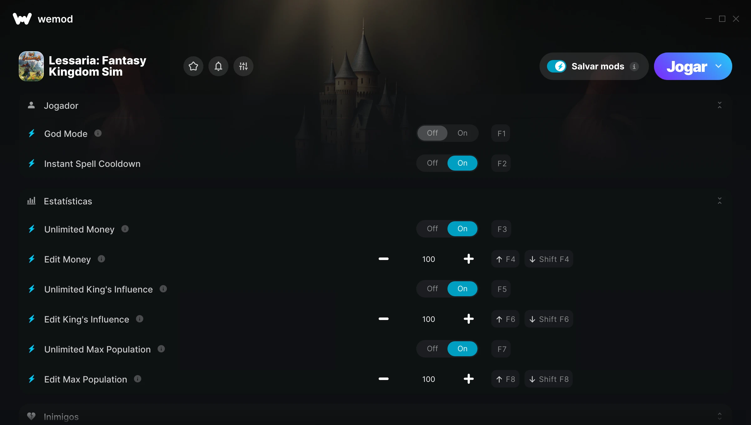 Como uso as trapaças em Lessaria: Fantasy Kingdom Sim?O WeMod exibirá todos os jogos no seu PC com segurança. Abra um jogo da lista e simplesmente pressione Jogar. Depois que o jogo for carregado e você estiver no jogo, você poderá começar a ativar diferentes trapaças!Vai funcionar com a minha versão do jogo?O WeMod usa tecnologia avançada para detectar a versão do jogo que você está rodando e avisar se é suportada. Se não for, você ainda terá a opção de tentar assim mesmo ou solicitar uma atualização!