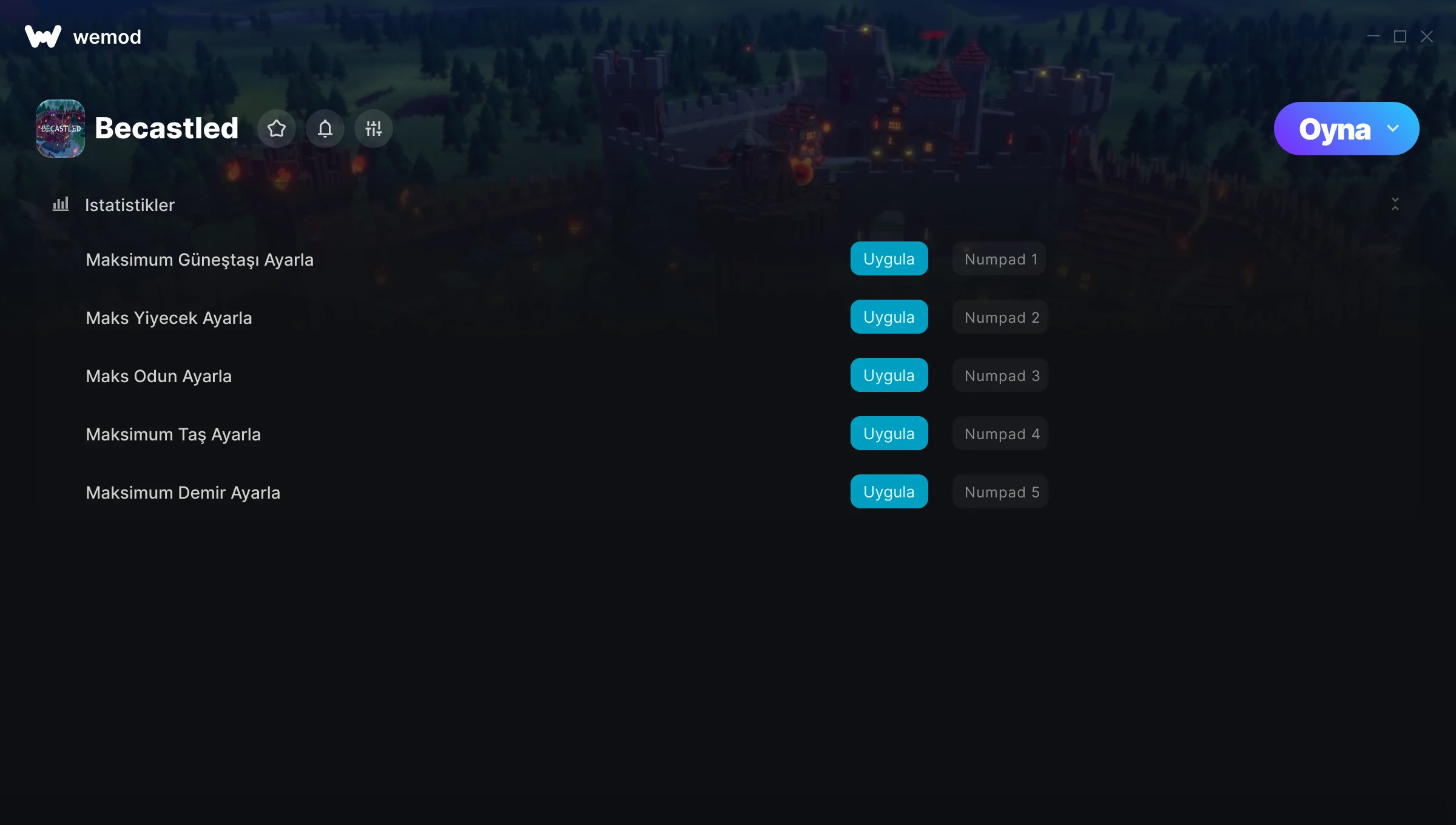 85MB Windows ...veya uygulamayı indirmek için bizi bilgisayarından ziyaret et Maksimum Güneştaşı Ayarla Edinin, Maks Yiyecek Ayarla & 3 diğer mod for Becastled with WeMod