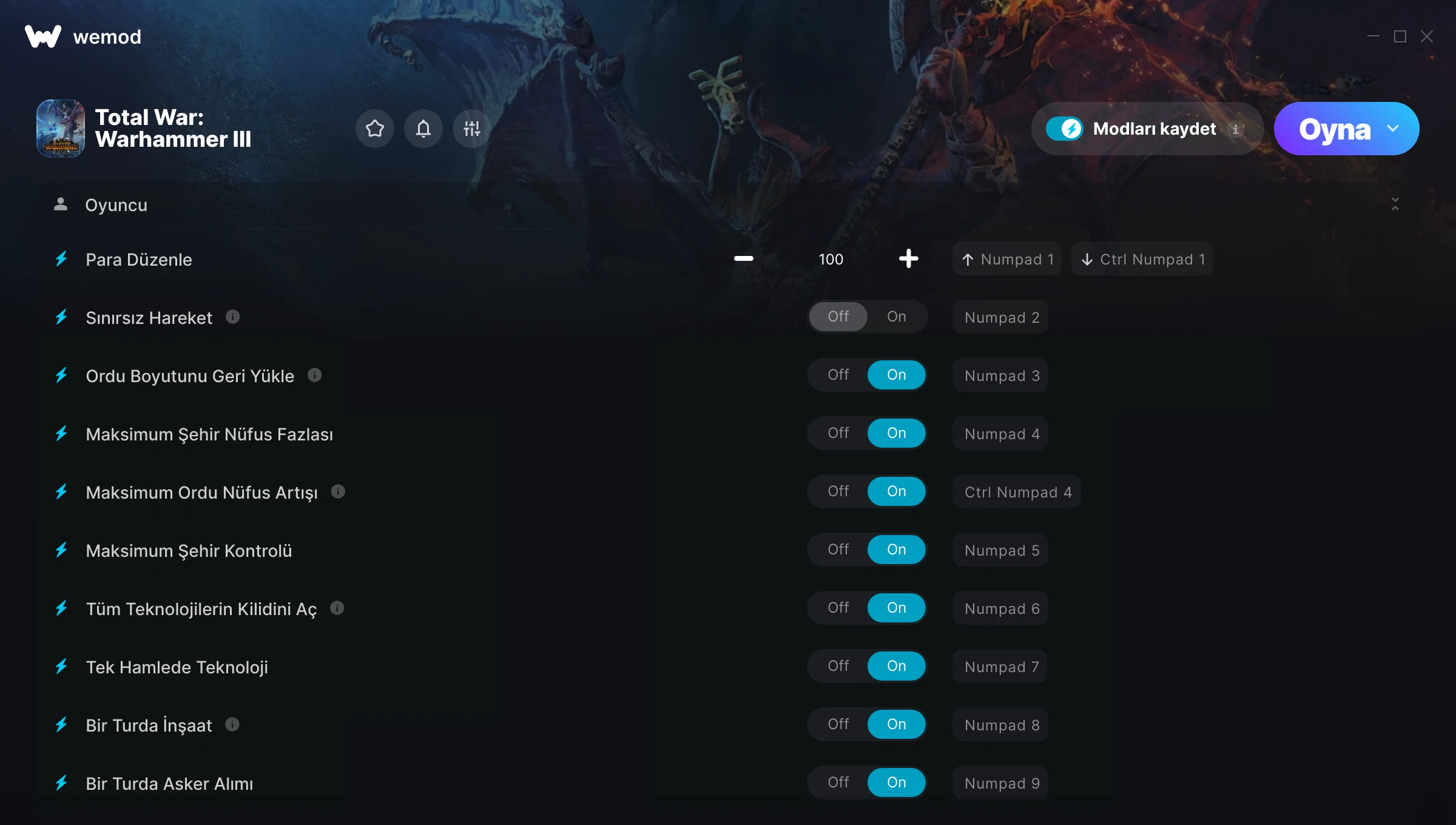 No issues everything works as advertised. Probably will play this game through without cheats with friends but as a new player to Warhammer 3, its extremely insanely in depth. I really needed an easy playthrough without have to go through the heartache of making stupid mistakes and paying for it with lost time. Made a very difficult game fun and easier to learn.