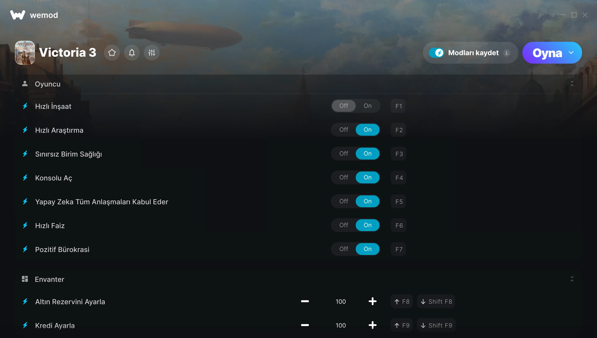 Hileleri Victoria 3 oyununda nasıl kullanırım?