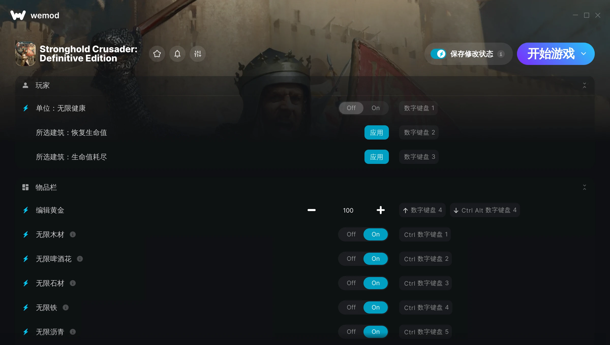 如何在 Stronghold Crusader: Definitive Edition 中使用修改器?WeMod 会安全地扫描并显示你的 PC 上已安装的所有游戏。只需从列表中选择一款游戏并点击“开始游戏”,即可快速启动游戏。当游戏完成加载并进入游戏画面后,你就可以开启各种修改了!这些修改适用于我的游戏版本吗?WeMod 还能使用先进技术自动检测你的游戏版本,并告知你该游戏是否支持修改。如果暂无修改,你可以选择直接进入游戏或提交制作申请!
